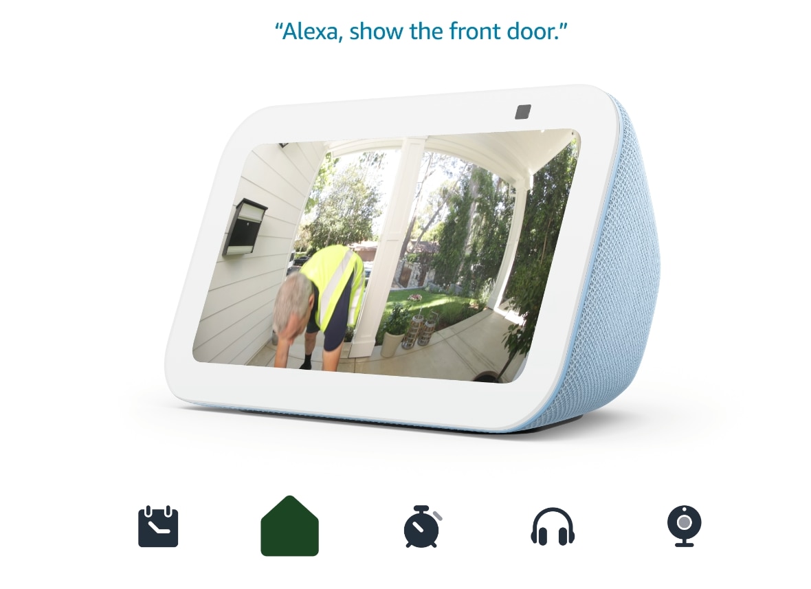 Utilizati camera incorporata pentru a va supraveghea familia, animalele de companie si multe altele, chiar si atunci cand sunteti plecat. Vizualizati usa din fata din Echo Show 5 cu sonerii video compatibile.