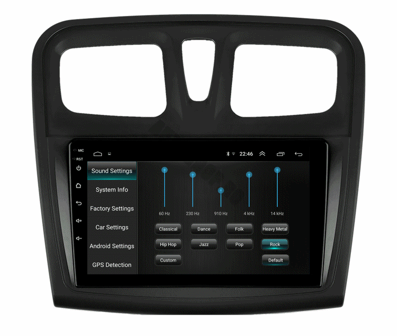 Sistem Operare Android 10, RAM: 1 GB, MEMORIE INTERNĂ: 16GB, CPU: Mediatek 8227L 1,3GHZx4 , Cip radio de inaltă calitate IC: NXP 6851 și Amplificator IC AC7315.