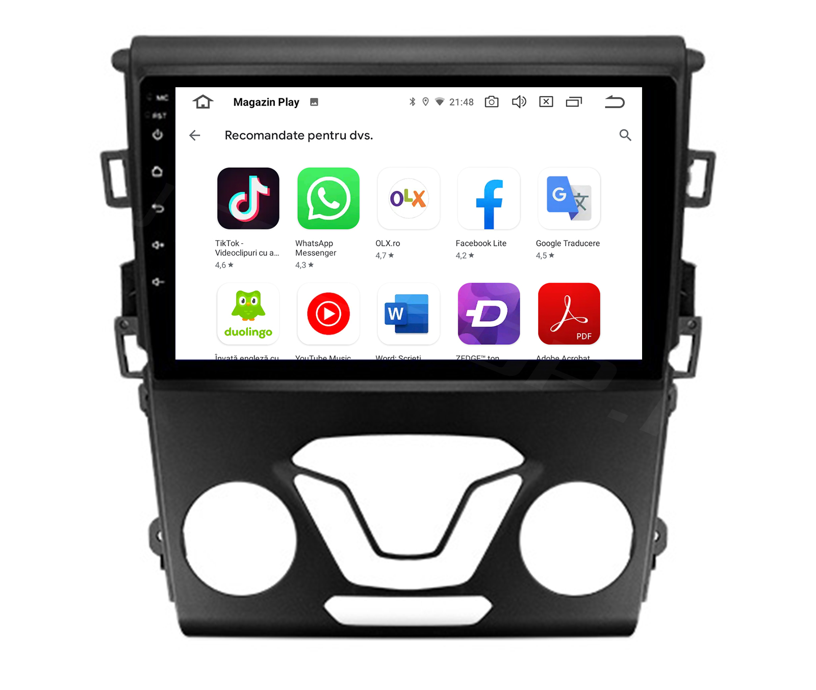 Aplicații Playstore, precum Youtube, Waze, Sygic, Google Maps, Facebook, WhatsAPP, Netflix, TV/Radio Online, Google Voice Control, Instagram, etc.