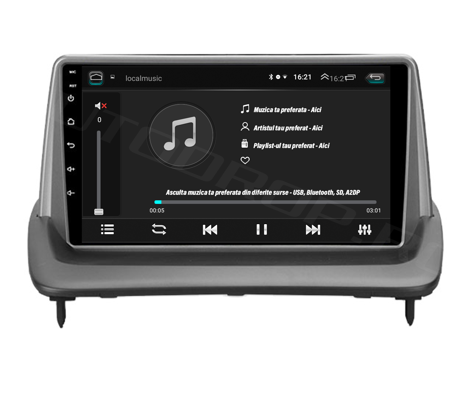 Funcție RDS ce permite afișajul în timp real al frecvenței Radio și denumirea acestuia. Odată salvate posturile principale, aplicația radio o să le recunoască automat după denumirea lor.