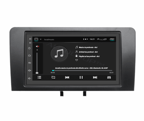 Funcție RDS ce permite afișajul în timp real al frecvenței Radio și denumirea acestuia. Odată salvate posturile principale, aplicația radio o să le recunoască automat după denumirea lor.
