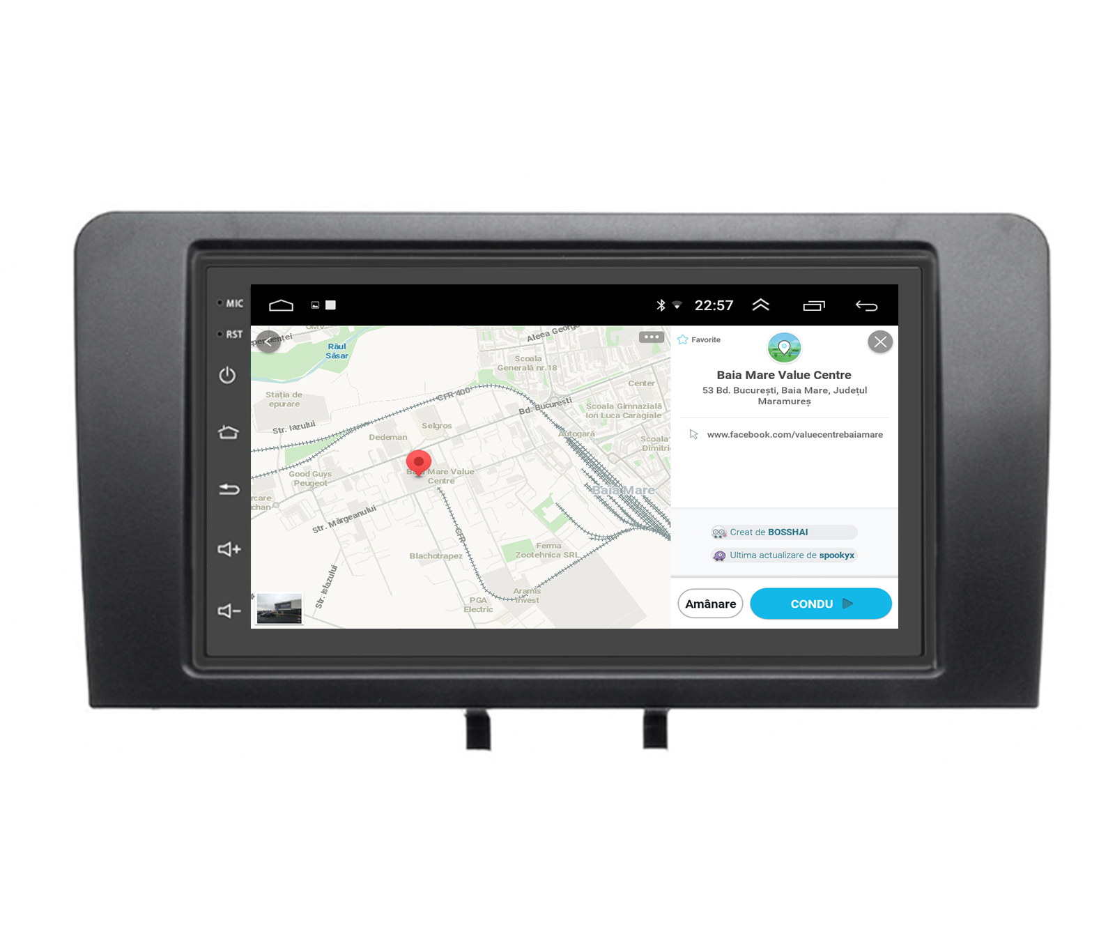 Suport online și offline pentru Navigatia GPS, susține Hărti 3D și îndrumare vocală în diverse limbi disponibile, majoritatea deja setate în limbă romană.