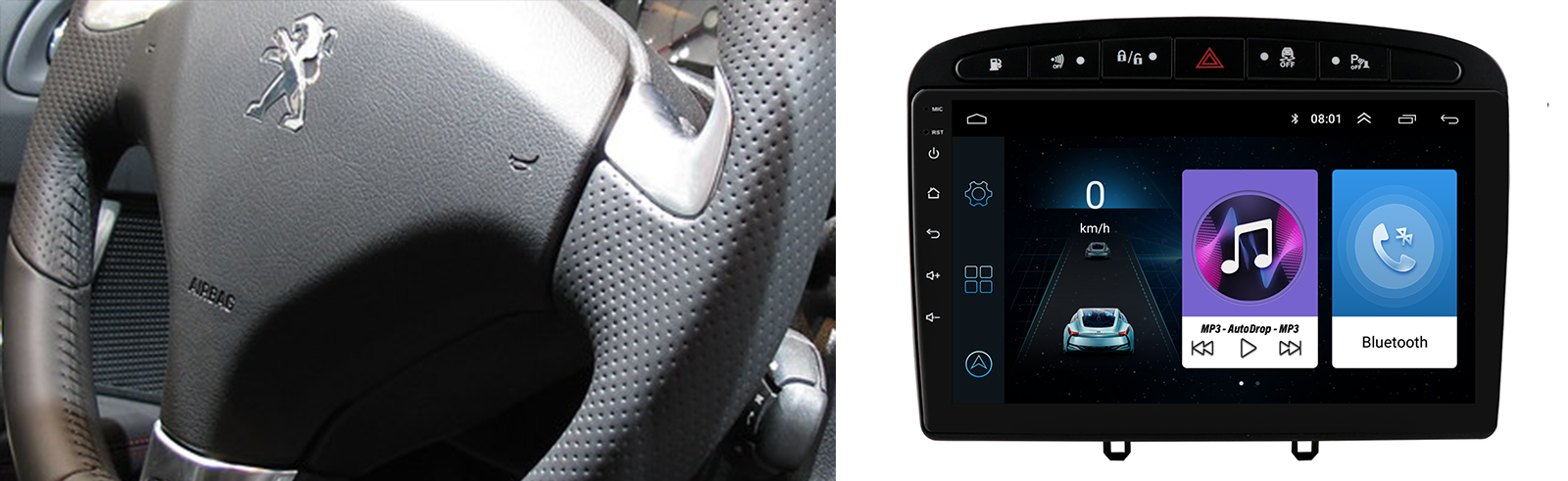 Navigație Android Dedicată pentru Peugeot 308 şi 408 cu ecran integrat de 9Inch. Acest sistem permite integrarea perfectă a unui multimedia android în locaşul prevăzut de fabrică. Un sistem inteligent care o să preia functile maşinii, precum Comenzi volan, informaţii CAN (Uşi deschise, butoane control şi multe altele).