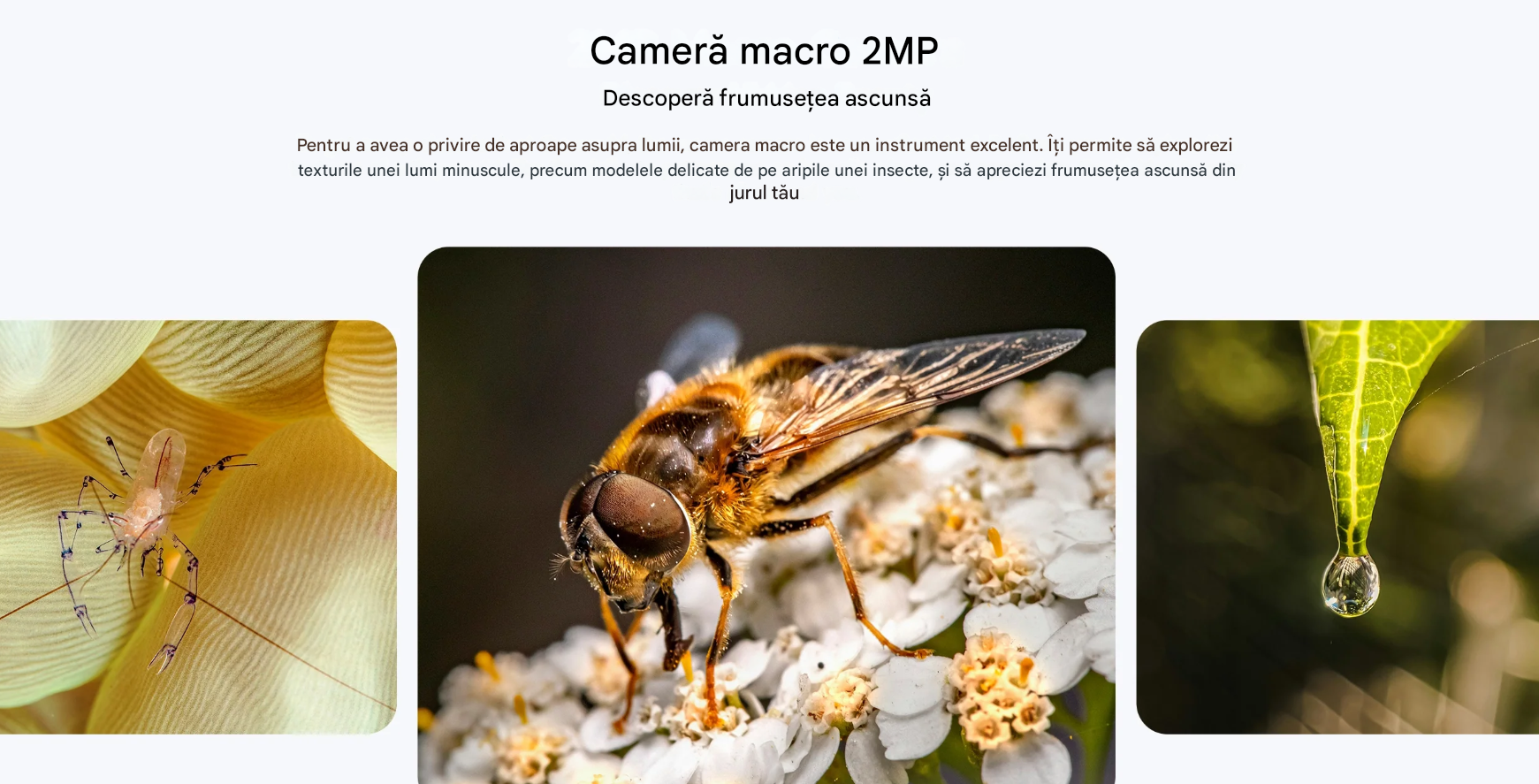 | Camera | Principala: 48MP (OV48B2Q, f/1.79) + 2MP Macro (GC02M1-C24YC) Secundara: 8MP (Sony IMX 219, f/2.0) |