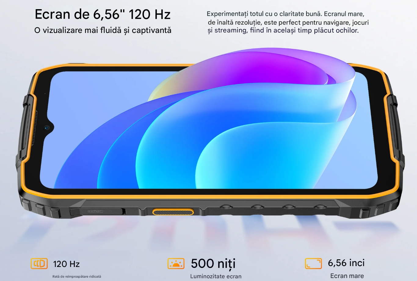 Ecran: 6.56 inch, Rezoluție HD+ (720 × 1612).