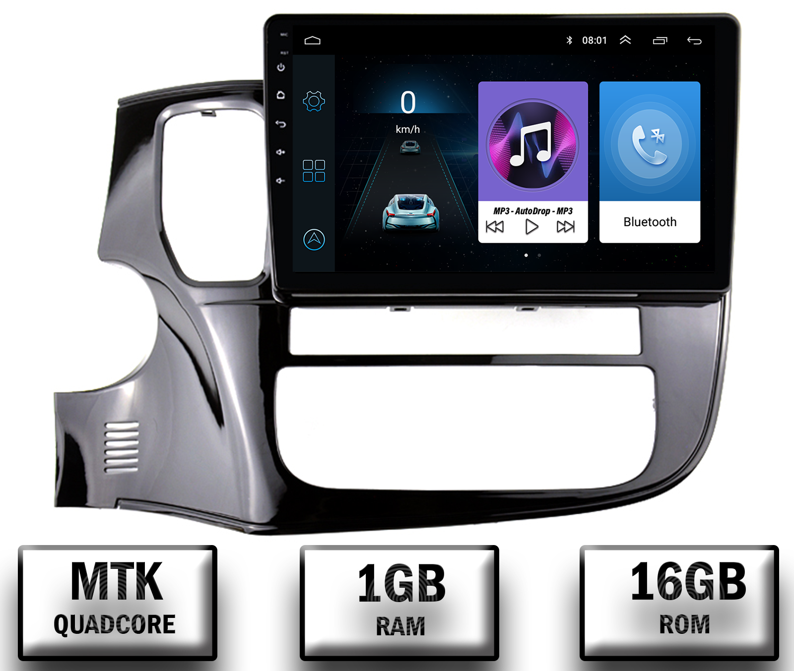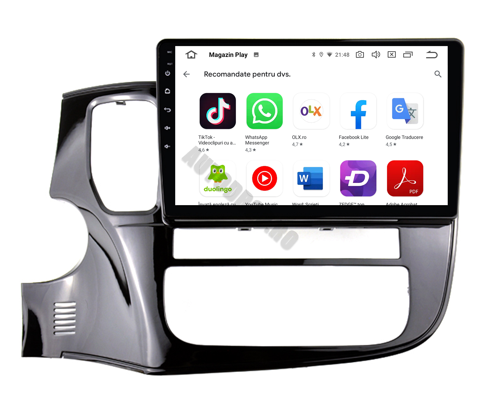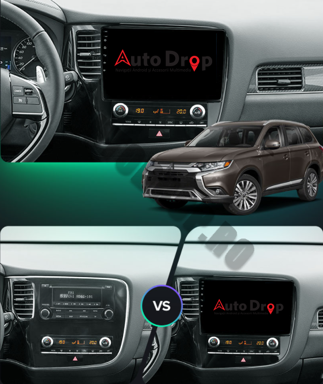 Navigație Android Dedicată pentru Mitsubishi Outlander de la 2013 în sus. Sistem Android 10 cu ecran de 10.1 inch integrat, configuraţie standard 1GB RAM şi 16GB ROM.
