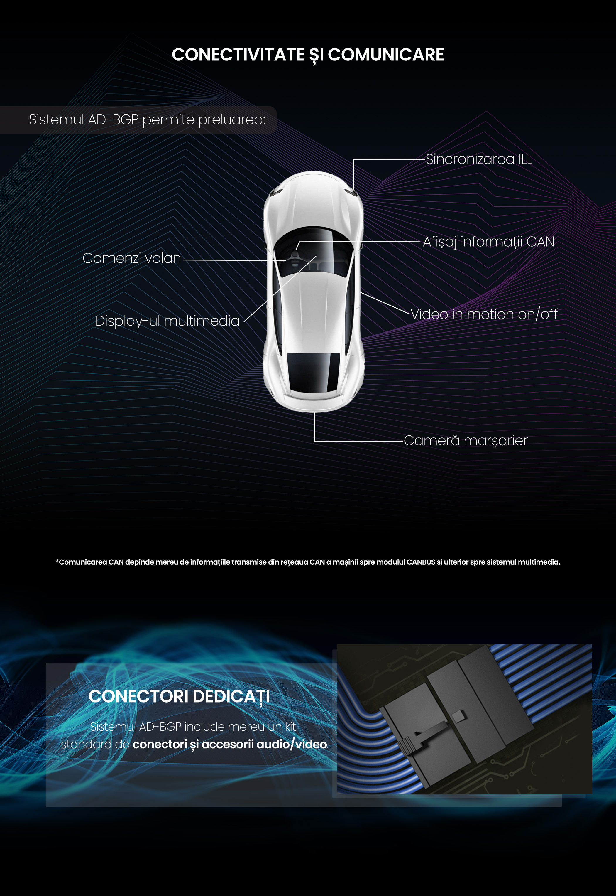 *Unele autoturisme pot necesita adaptări speciale, de exemplu un alt tip de chenar de încadrare sau conector alimentare. Aceste aspecte se discuta înainte de achiziție dacă este cazul și se pot remedia pe parcurs împreună cu suportul tehnic. Firma noastră își rezervă dreptul de a nu onora o comandă dacă consideră că un produs nu este cel puțin 95% compatibil și conform cu autoturismul în caz, indiferent de decizia clientului.