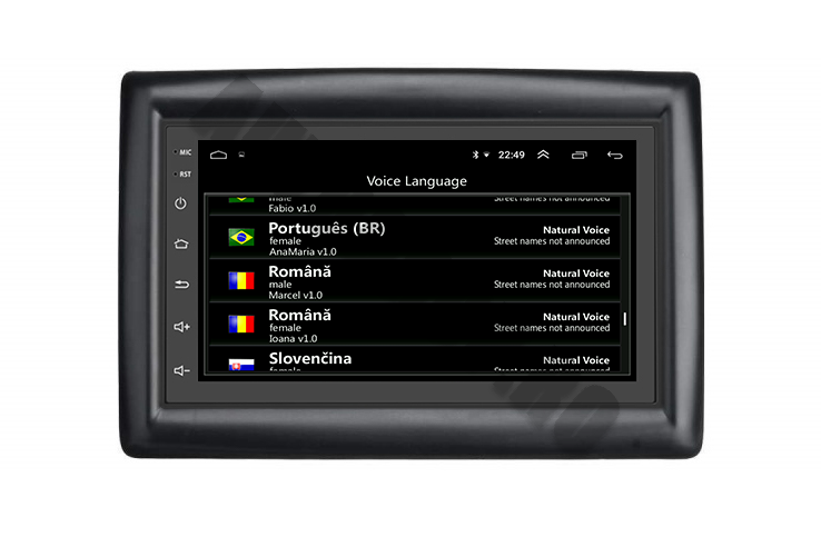 Suport online și offline pentru Navigatia GPS, susține Hărti 3D și îndrumare vocală în diverse limbi disponibile, majoritatea deja setate în limbă romană.