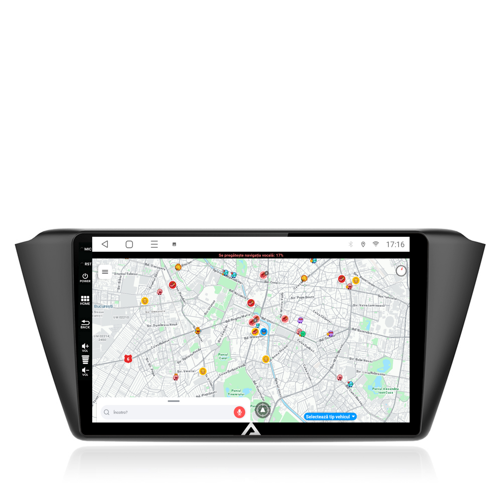 Navigație Auto Dedicată pentru autoturismul Skoda Fabia 3 2015 - Prezent. Internet, GPS, Bluetooth, USB, AUX, Posibilitate Camera marsarier si camera trafic DVR. Configuratie premium cu 2GB RAM si 32GB memorie interna.