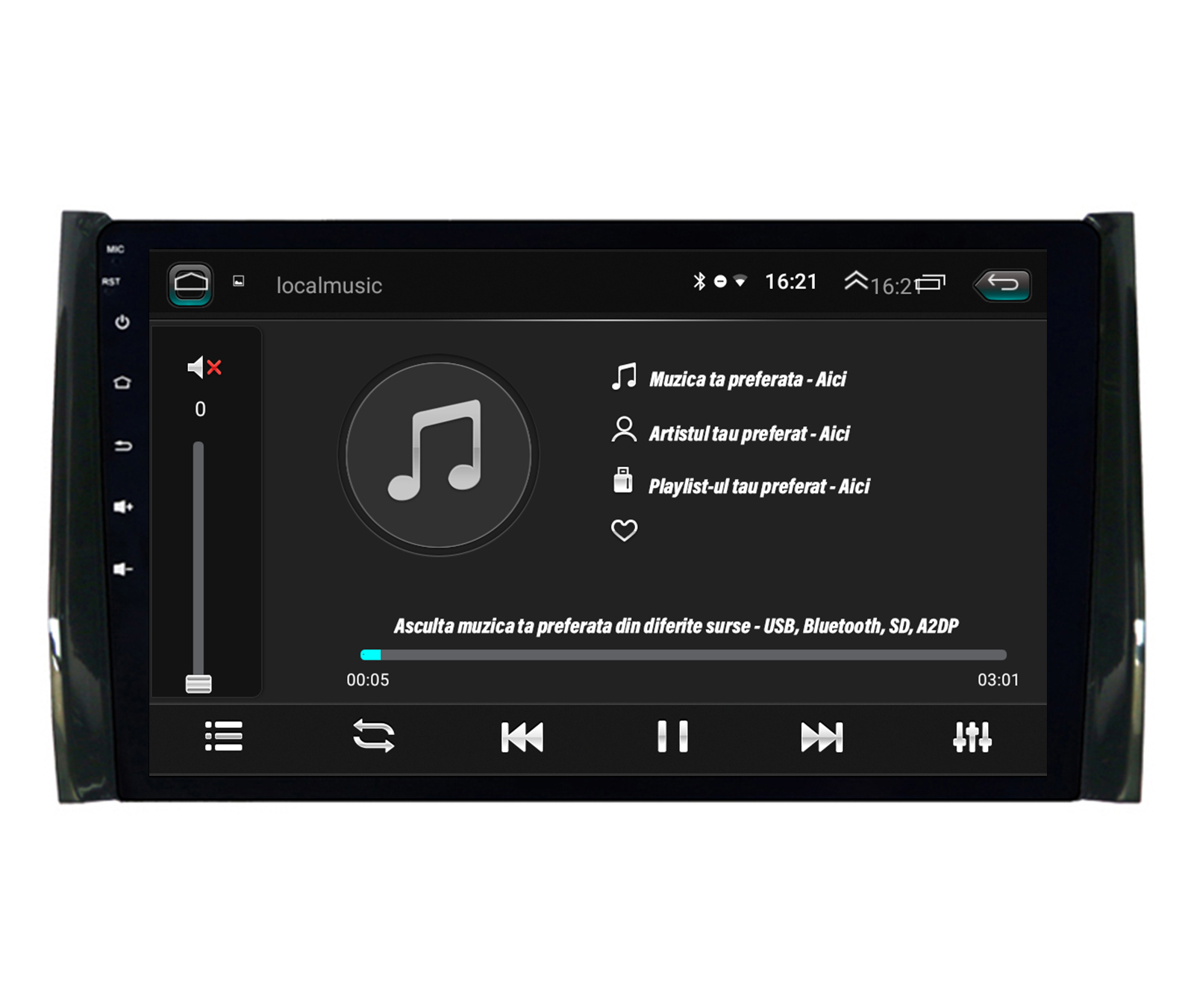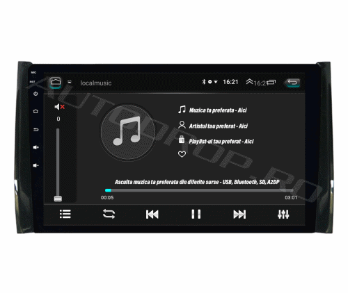 Funcție RDS ce permite afișajul în timp real al frecvenței Radio și denumirea acestuia. Odată salvate posturile principale, aplicația radio o să le recunoască automat după denumirea lor.