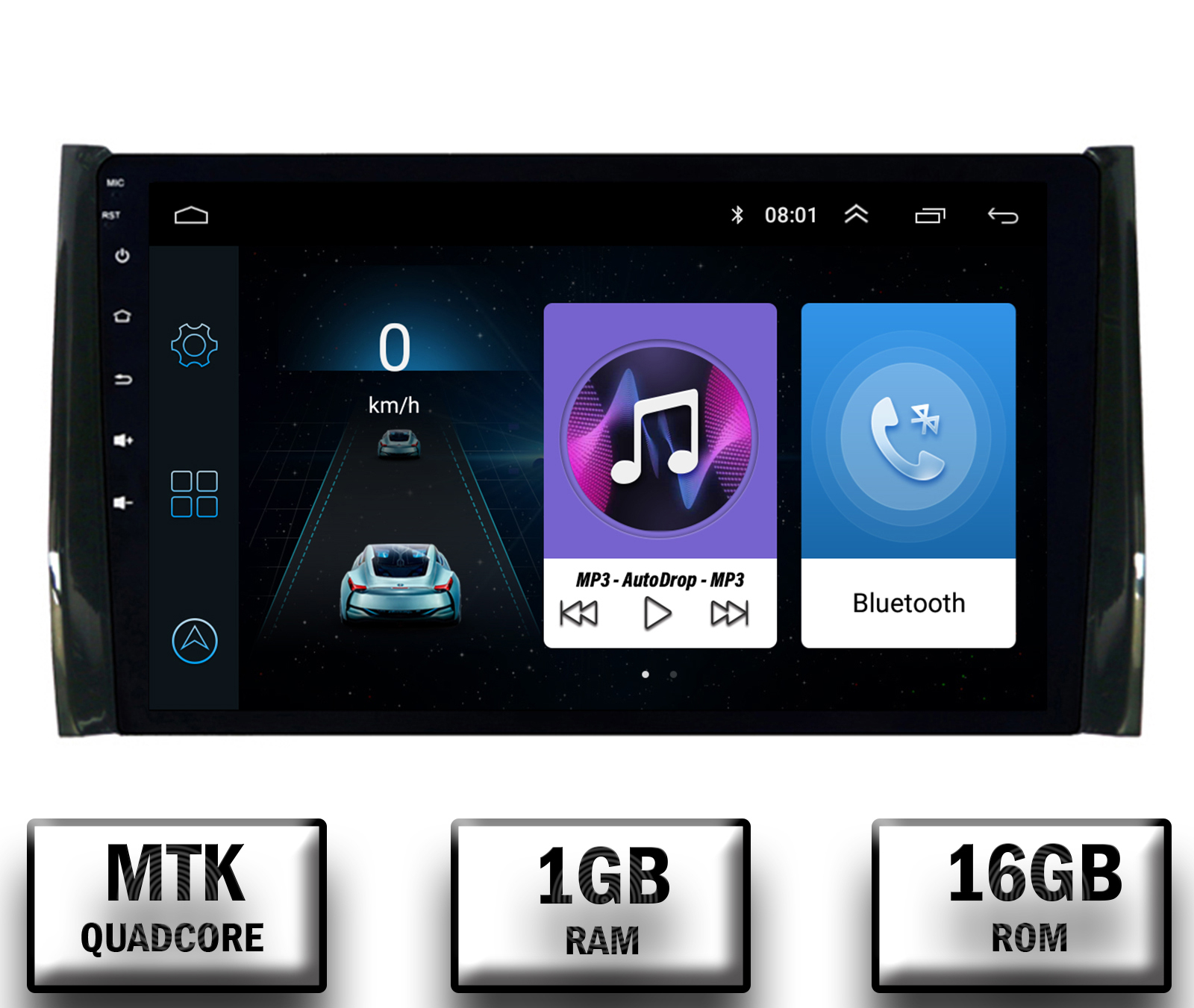 Sistem Operare Android 10, RAM: 1 GB, MEMORIE INTERNĂ: 16GB, CPU: Mediatek 8227L 1,3GHZx4 , Cip radio de inaltă calitate IC: NXP 6851 și Amplificator IC AC7315.