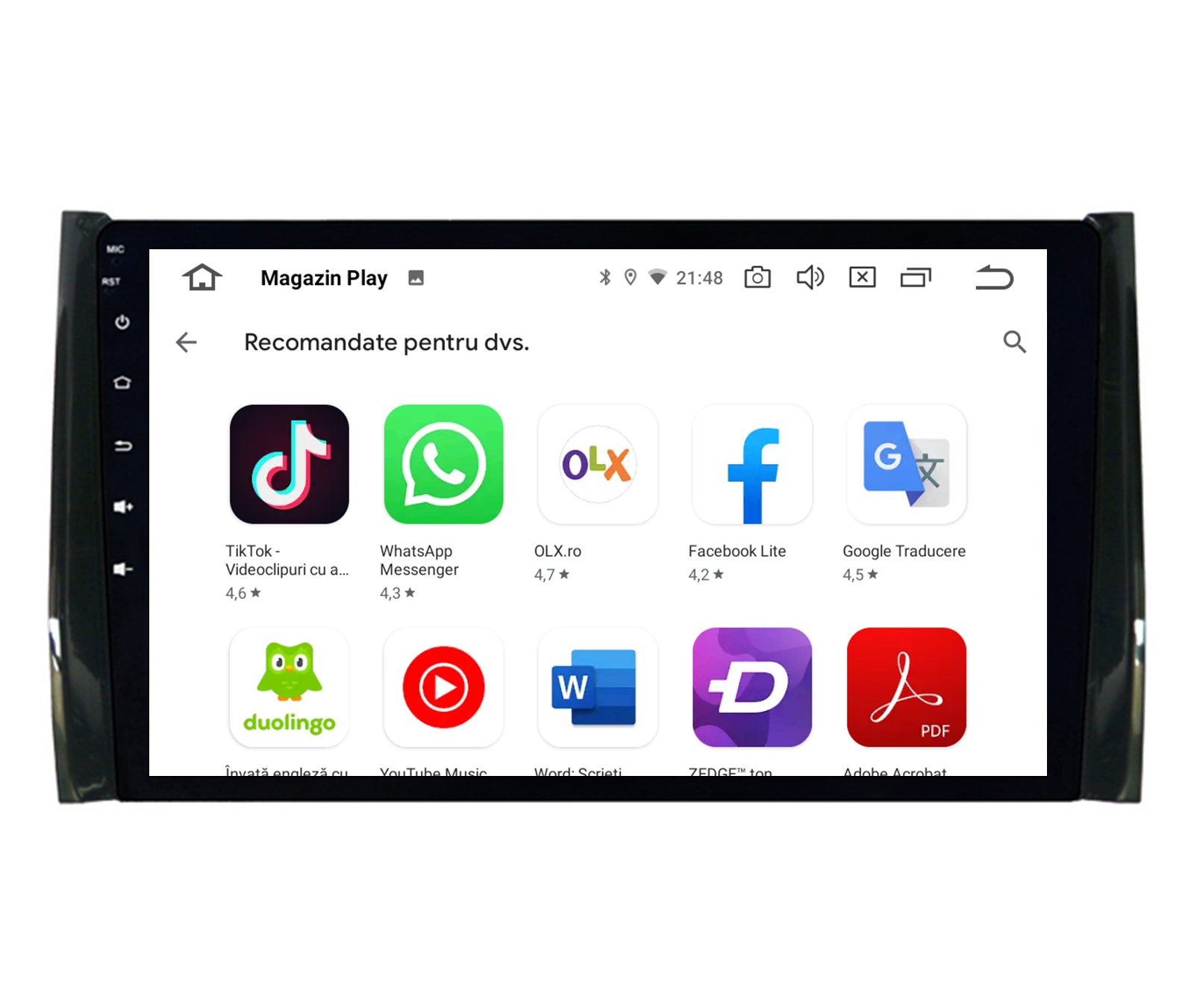 Aplicații Playstore, precum Youtube, Waze, Sygic, Google Maps, Facebook, WhatsAPP, Netflix, TV/Radio Online, Google Voice Control, Instagram, etc.