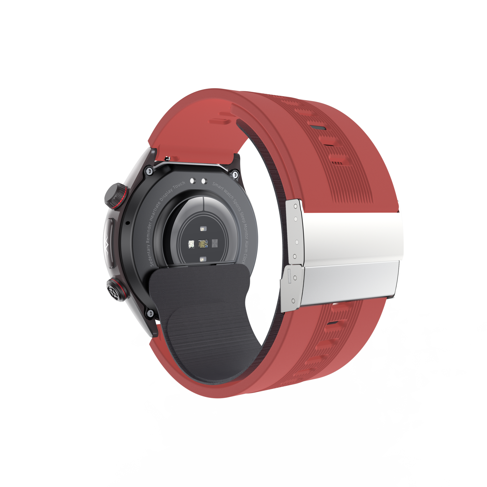 Smartwatch iSEN S26 Rosu, 2.06" AMOLED, Tensiometru cu pompa si airbag, ECG, Monitorizare glicemie, oxigen, temperatura si somn, Moduri sport, Apel BT, Control muzica, Prognoza meteo, NFC, 530mAh.