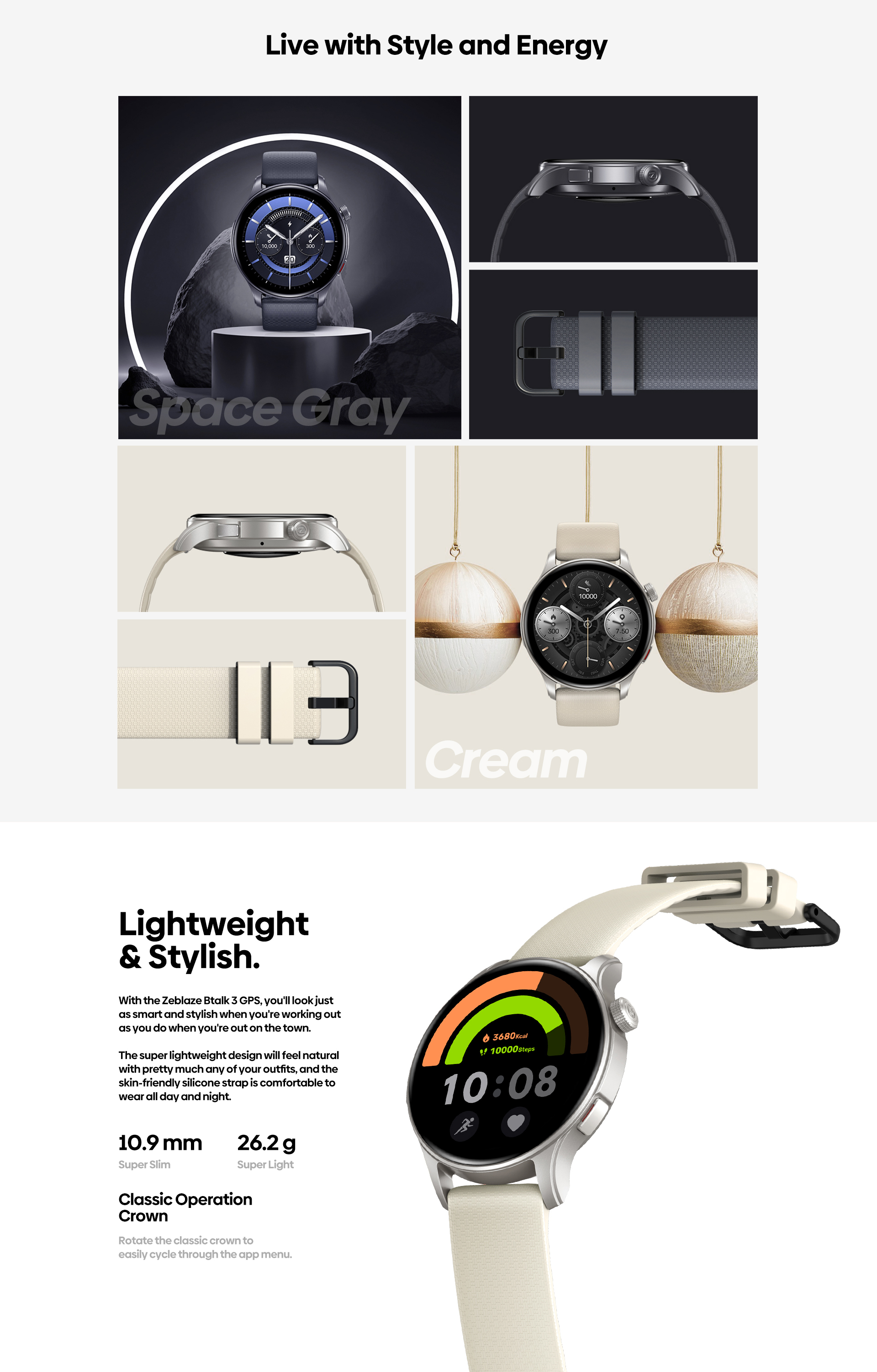 | 1 x Smartwatch Zeblaze Btalk 3 GPS Crem 1 x Cablu de încărcare magnetic |