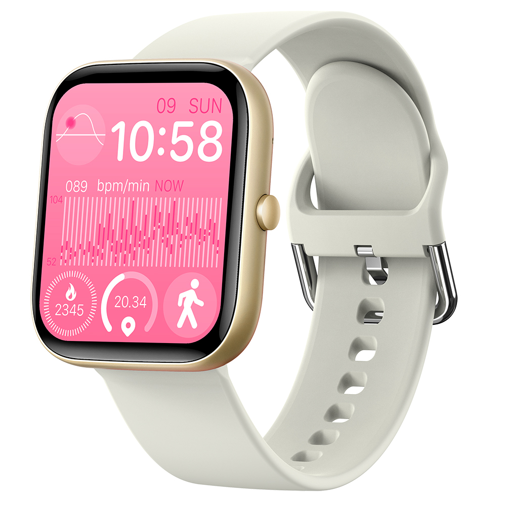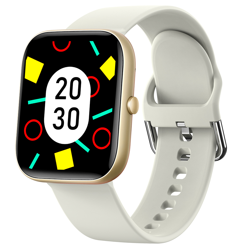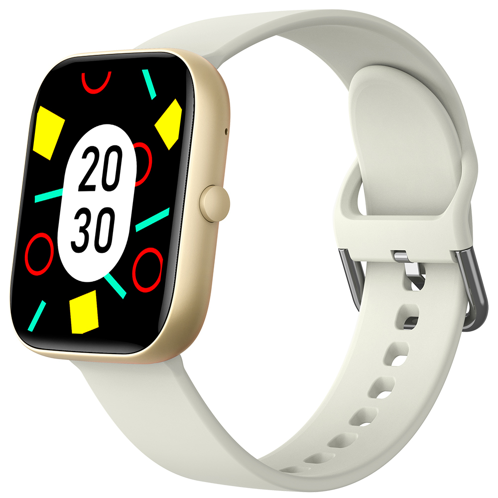 Smartwatch iSEN C08, Auriu, Curea TPU Alb, 1.91" TFT, Ritm Cardiac, Tensiune Arteriala, Oxigen in Sange (SpO2), Moduri Sport, Notificari Apeluri & Mesaje, 200 mAh, Android 5.0 / iOS 10.0