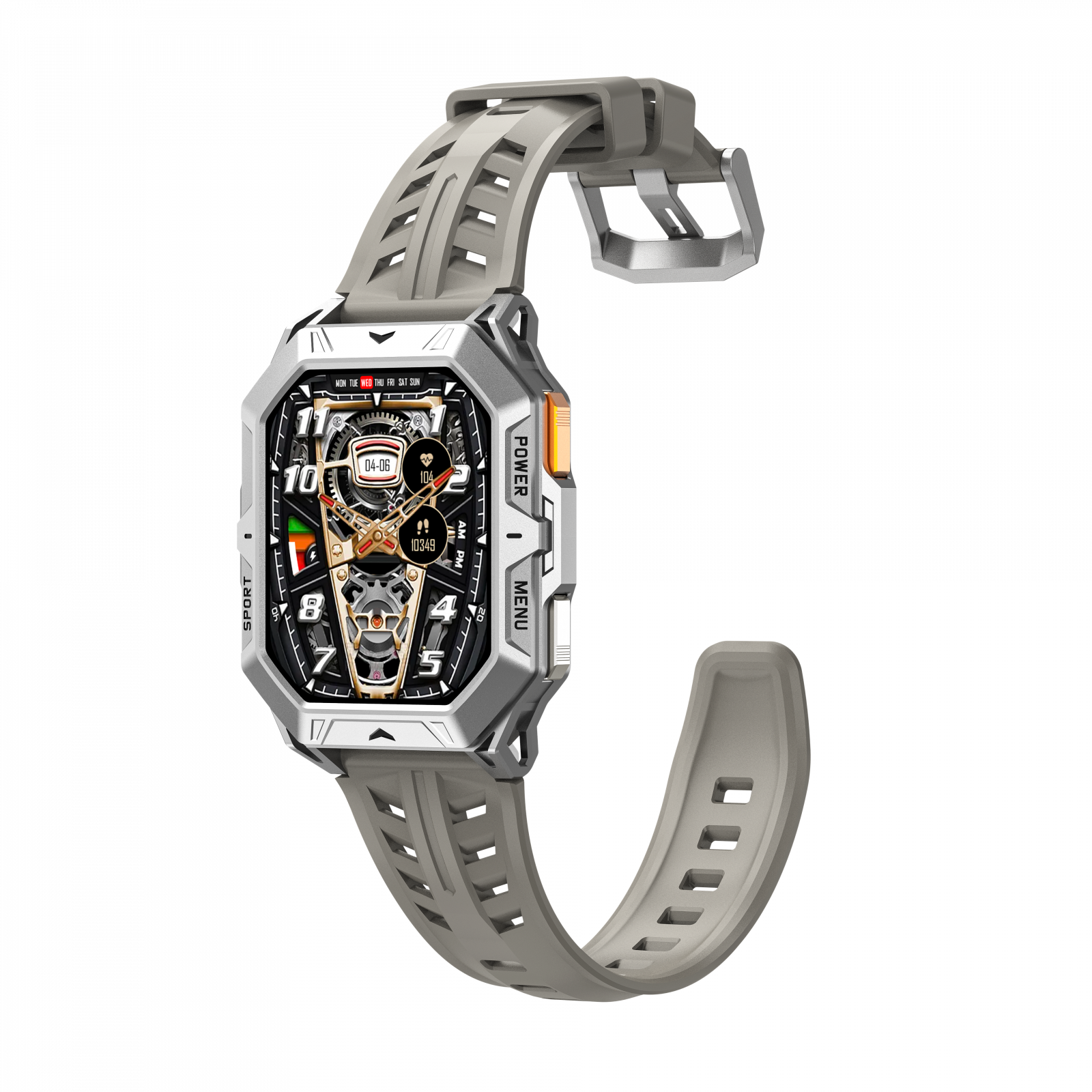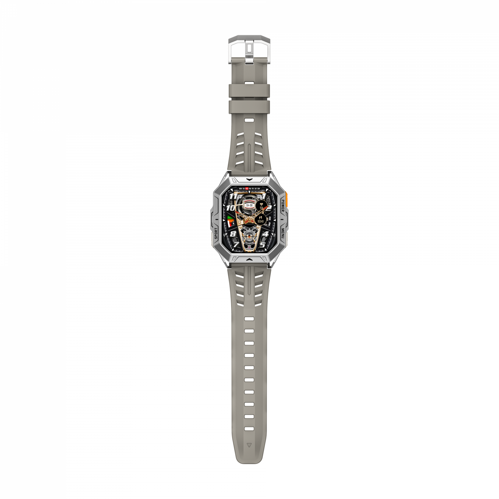 Smartwatch iSEN X1 Pro, cu curea de silicon gri, oferă monitorizare completă a sănătății, funcții pentru sport, HRV, ECG, apeluri Bluetooth și o baterie de 1000 mAh. Ecran AMOLED HD de 2.13". Compatibil cu Android 9.0 sau iOS 9.0 și versiuni mai noi. Ideal pentru un stil de viață activ.