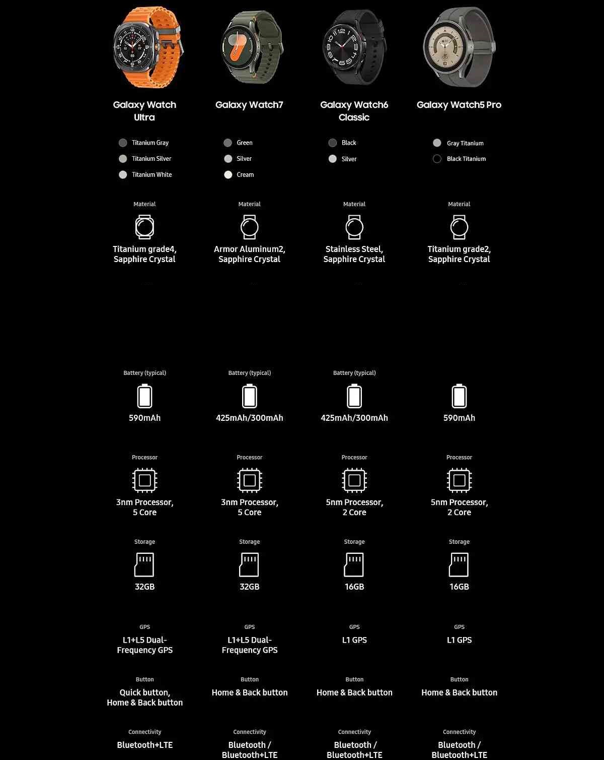 | Altele | Memorie interna 32GB Memorie RAM 2GB Acumulator Li-Ion 590 mAh Incarcare 10W wireless LTE eSIM Sistem operare Android Wear OS 5 / One UI Watch 6 |