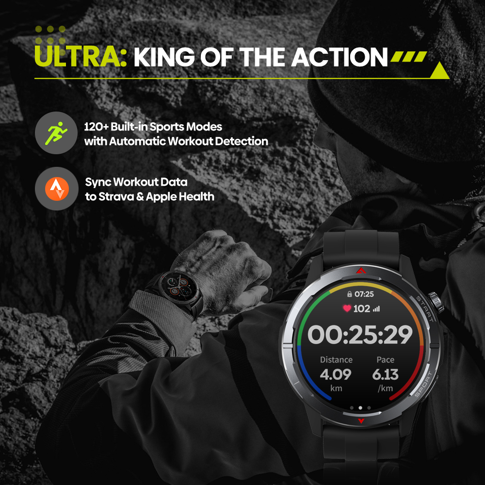 Zeblaze Stratos 3 Ultra Negru oferă funcții avansate de sănătate, peste 120 de moduri sport și un design robust, ideal pentru activitățile zilnice și aventurile outdoor. Ecranul AMOLED de 1.43” și aplicația Zeblaze Fit asigură o experiență modernă și intuitivă.