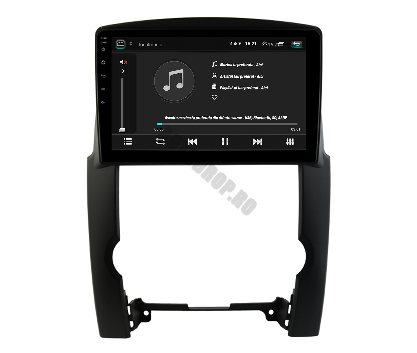 Funcție RDS ce permite afișajul în timp real al frecvenței Radio și denumirea acestuia. Odată salvate posturile principale, aplicația radio o să le recunoască automat după denumirea lor.