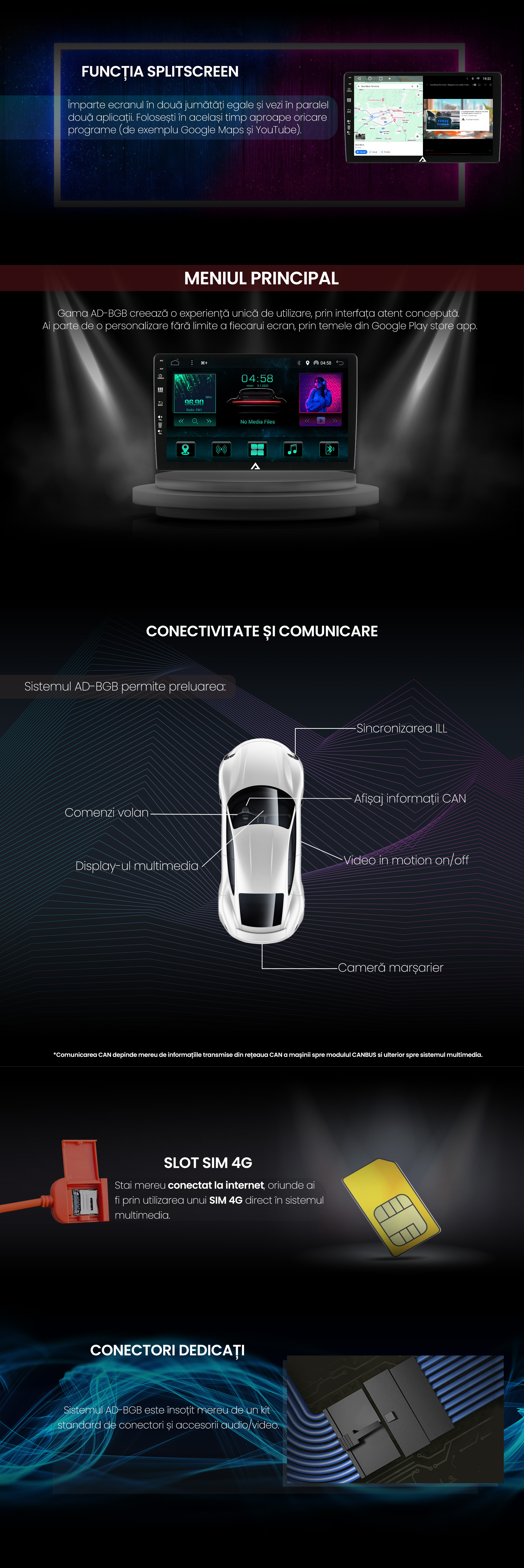 *Unele autoturisme pot necesita adaptări speciale, de exemplu un alt tip de chenar de încadrare sau conector alimentare. Aceste aspecte se discuta înainte de achiziție dacă este cazul și se pot remedia pe parcurs împreună cu suportul tehnic. Firma noastră își rezervă dreptul de a nu onora o comandă dacă consideră că un produs nu este cel puțin 95% compatibil și conform cu autoturismul în caz, indiferent de decizia clientului.