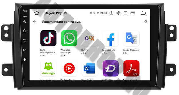 Aplicații Playstore, precum Youtube, Waze, Sygic, Google Maps, Facebook, WhatsAPP, Netflix, TV/Radio Online, Google Voice Control, Instagram, etc.