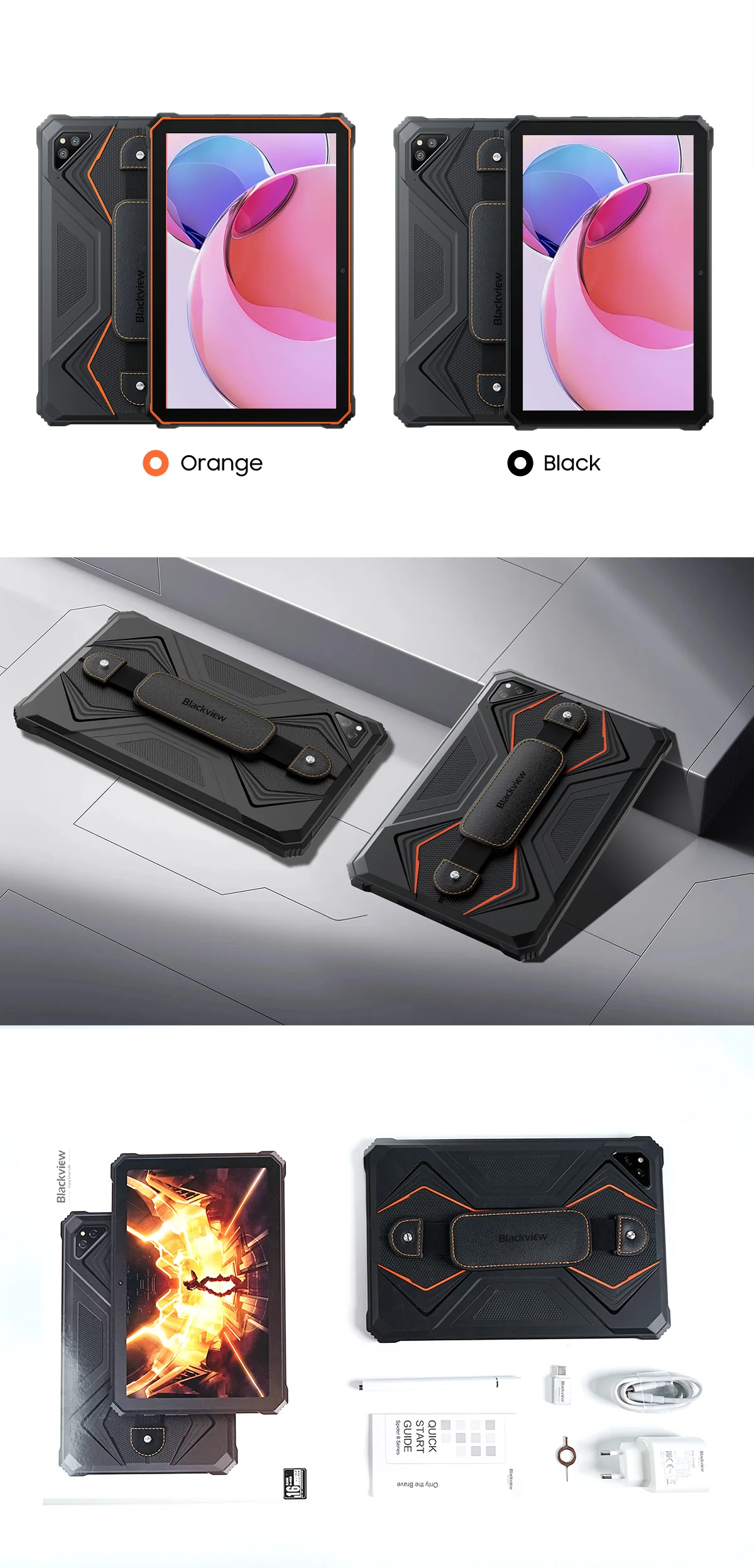 | 1x Tableta Blackview Active 8 Pro 1x Incarcator 33W 1x Cablu USB 1 x Stylus 1x Adaptor USB-Type-C 1x Banda de sustinere 1x Manual de utilizare |
