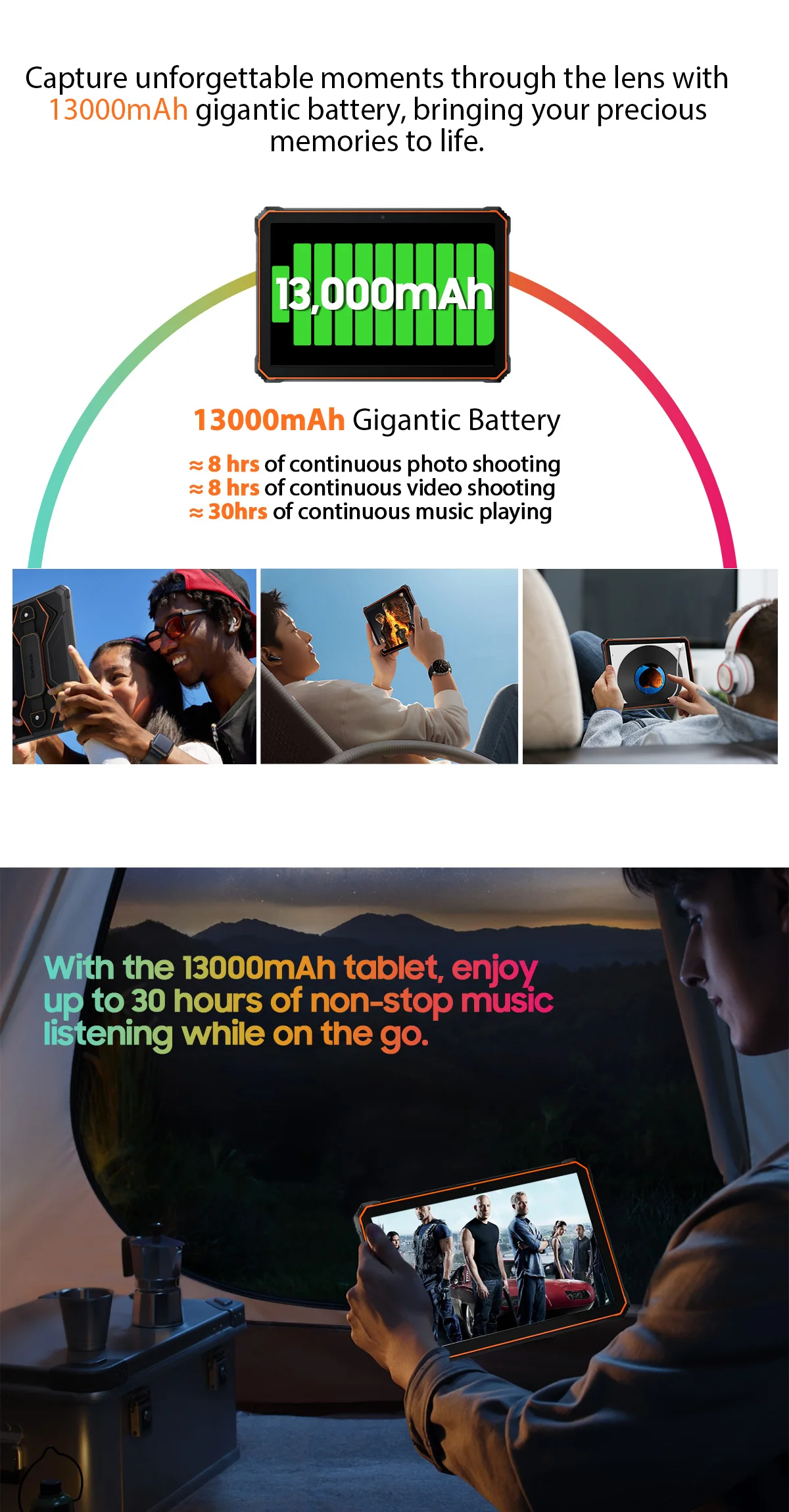 Tableta Blackview Active 6 Rugged, Orange, FHD+ 10.1", HD, 4G, Android13, 16GB RAM(8+ 8 extensibili), 128GB ROM, UNISOC Tiger T606, 13000mAh, OTG, Dual SIM