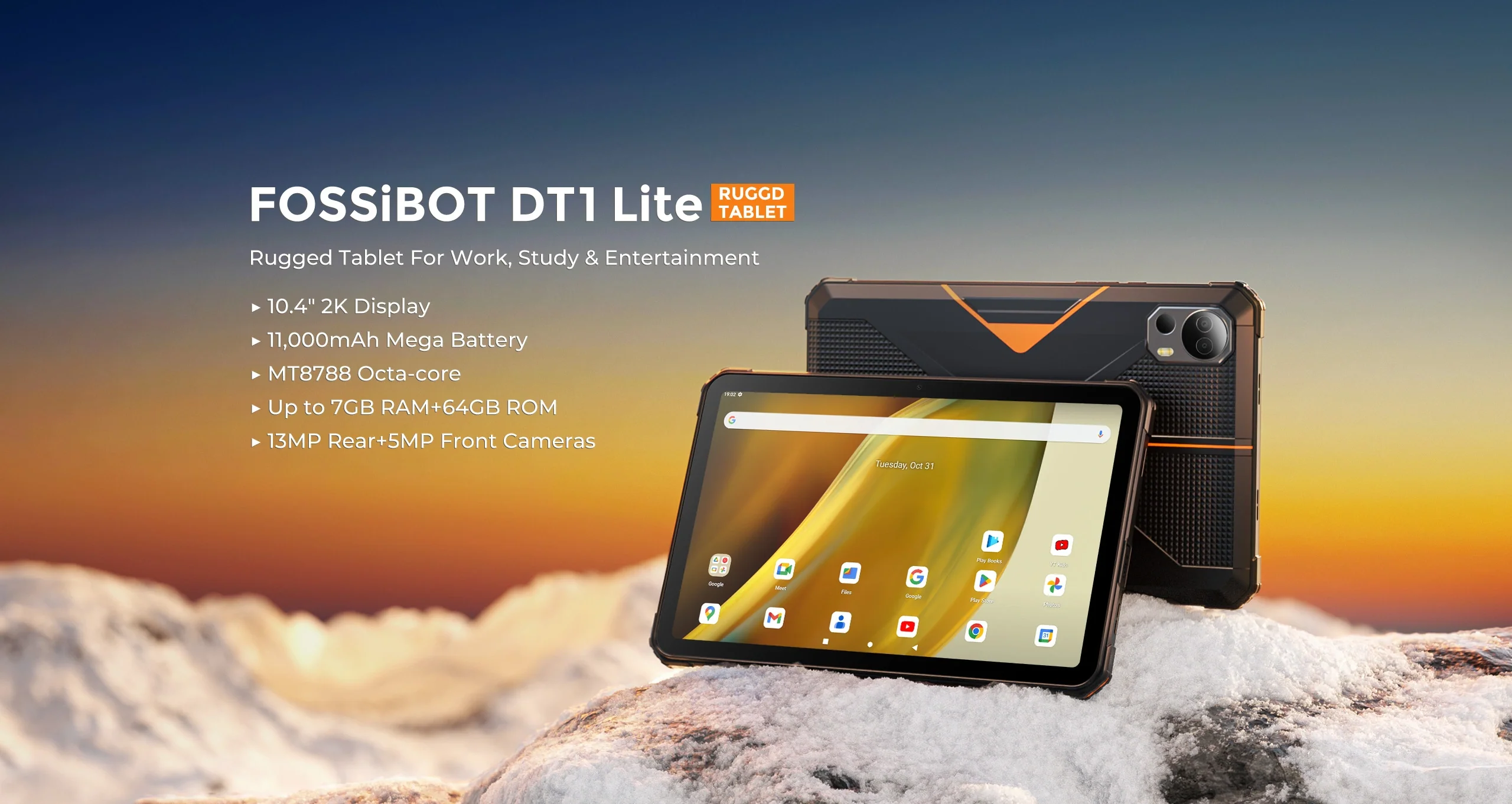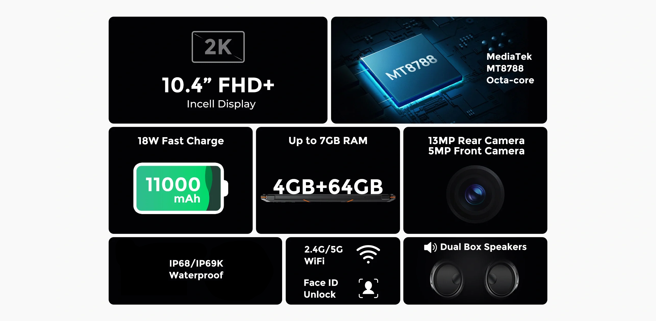Tableta FOSSiBOT DT1 Lite, 4G, 10.4'' 2K, 7GB RAM (4GB + 3GB extensibili), 64GB ROM, 13MP+5MP, Android 13, MediaTek MT8788 Octa-core, 11000mAh, incarcare rapida 5V/2A, Face ID, Dual-Speaker Sound Syst