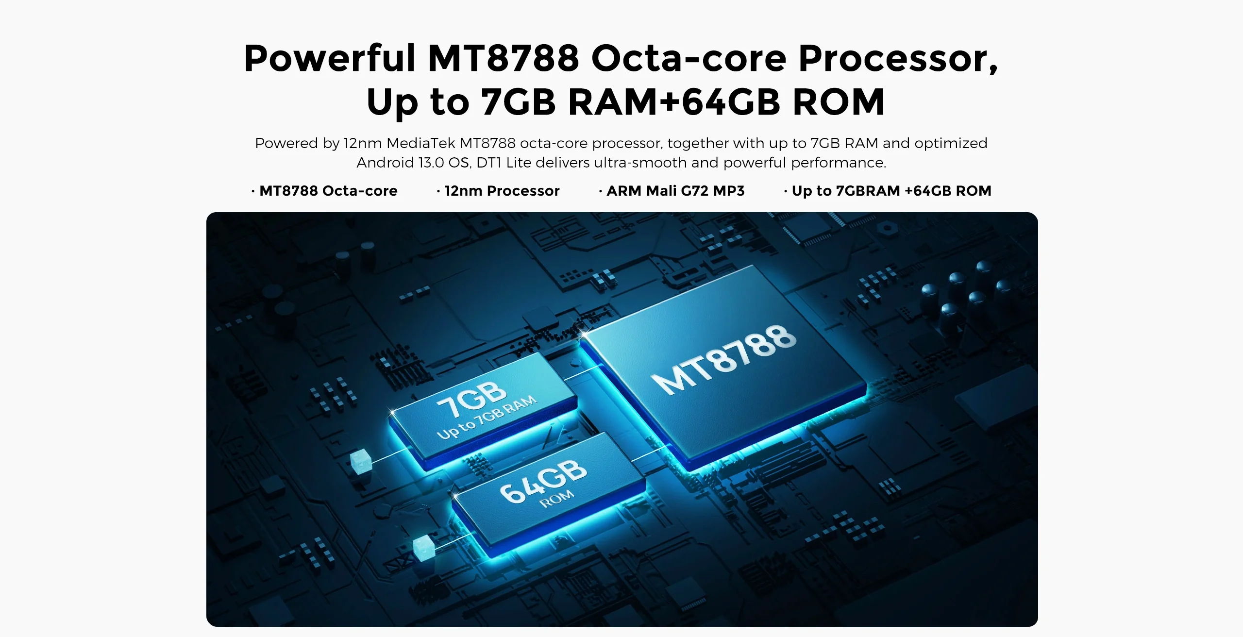 | Procesor | MT8788 4 x Cortex-A73 2.0GHz/ 4 x Cortex-A53 2.0GHz |