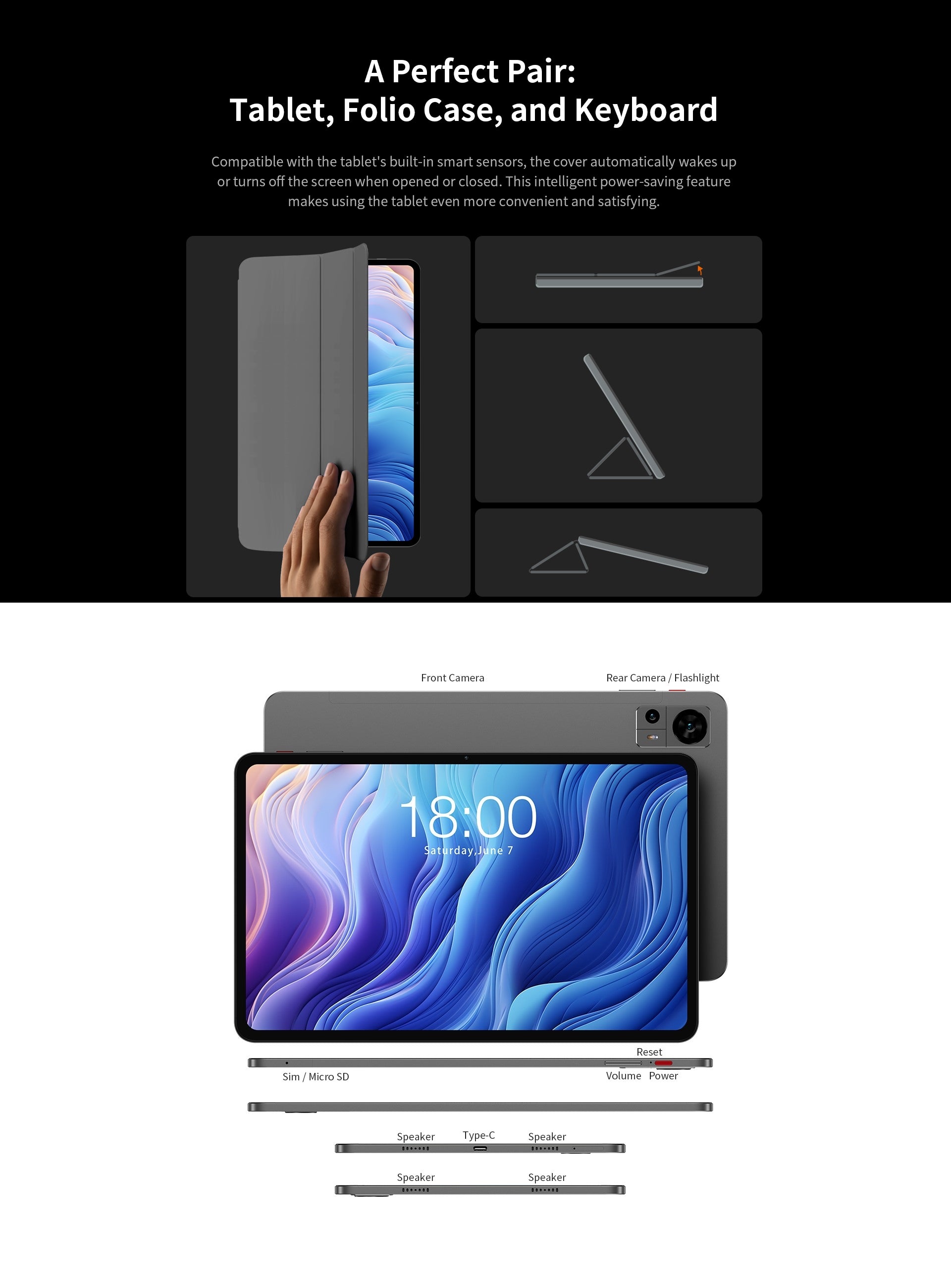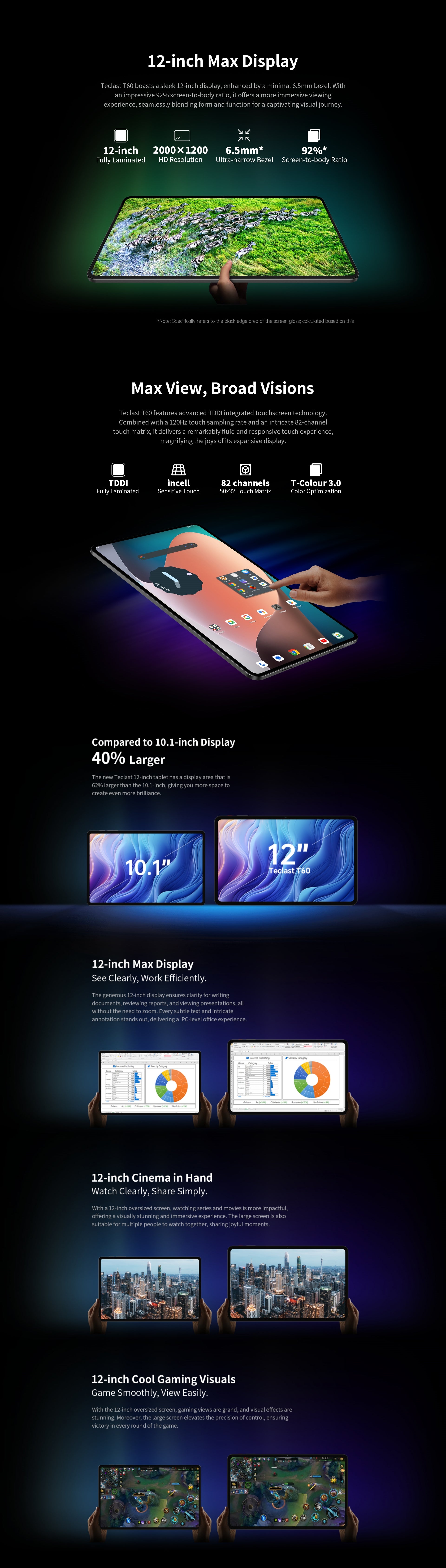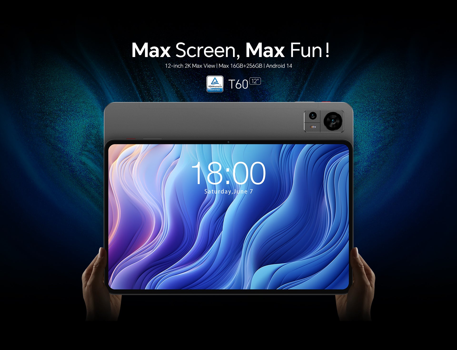 Tableta Teclast T60, 4G, 12" 2K IPS, Unisoc T616 8-Core, 16GB RAM (8GB + 8GB), 256GB ROM, Android 13, 13MP+5MP, Google Widevine DRM L1, 8000mAh, Dual SIM