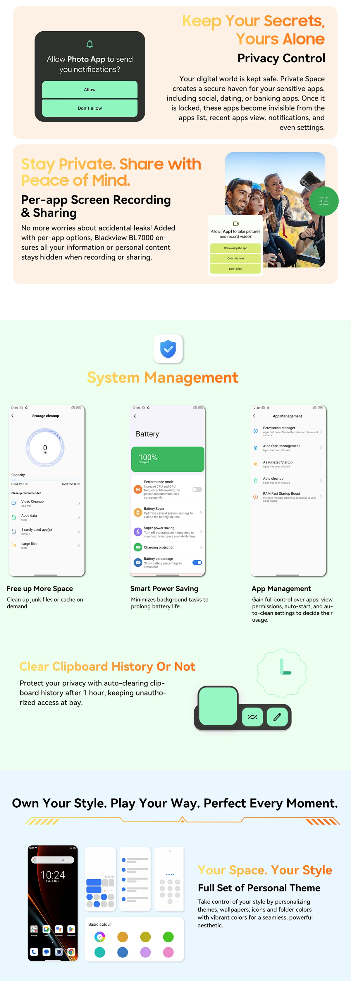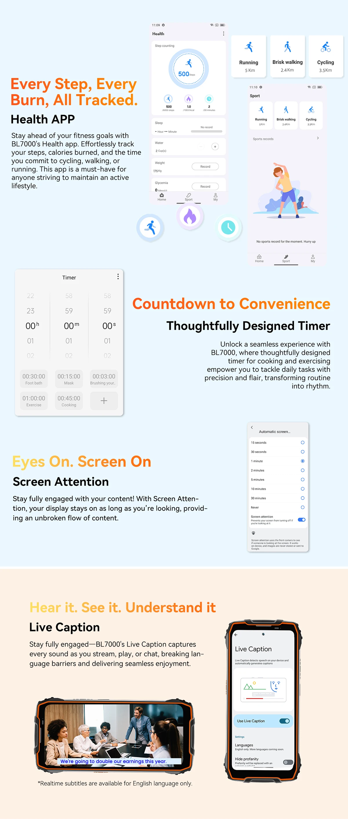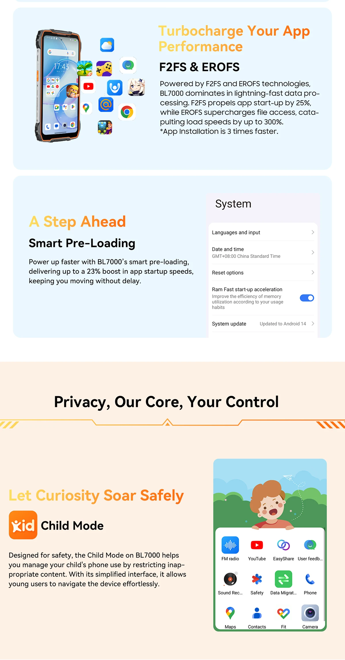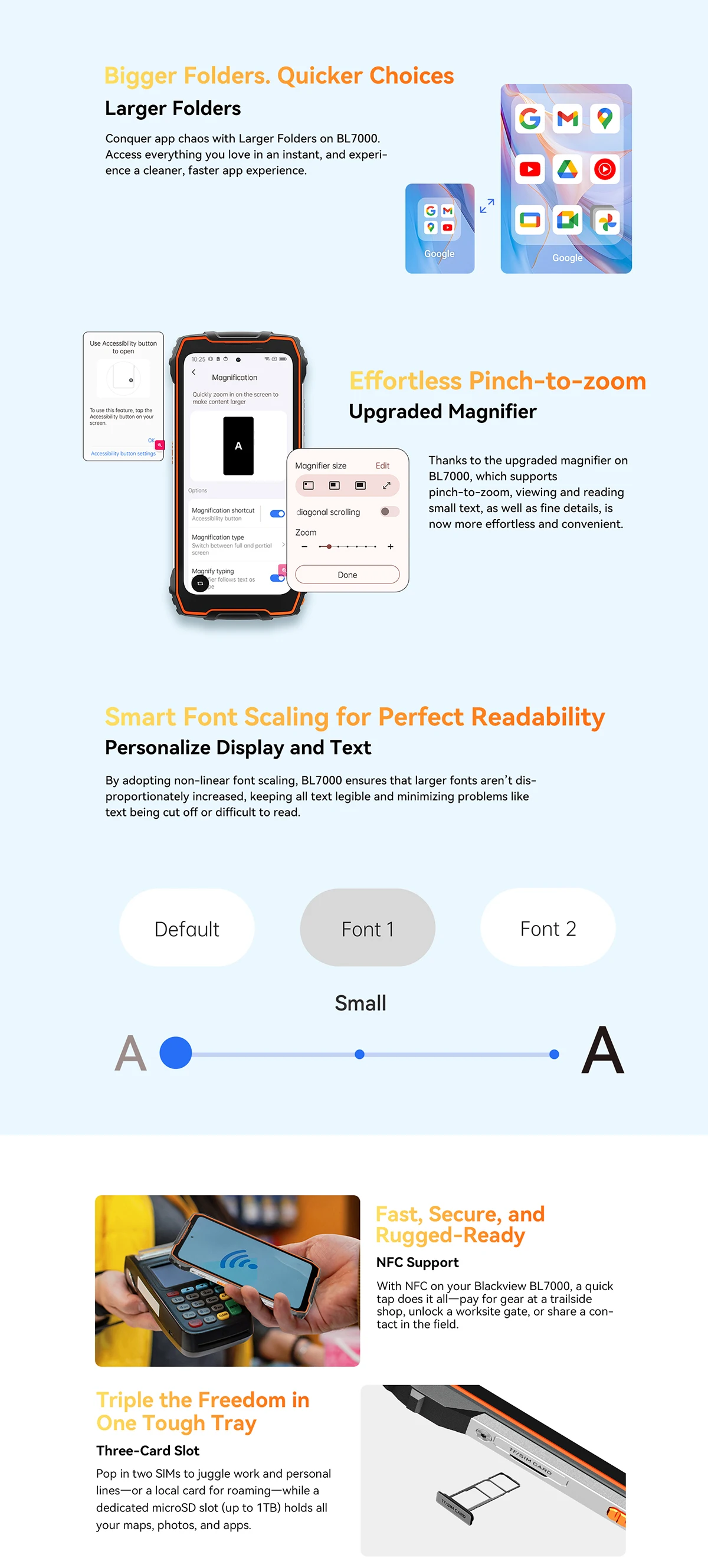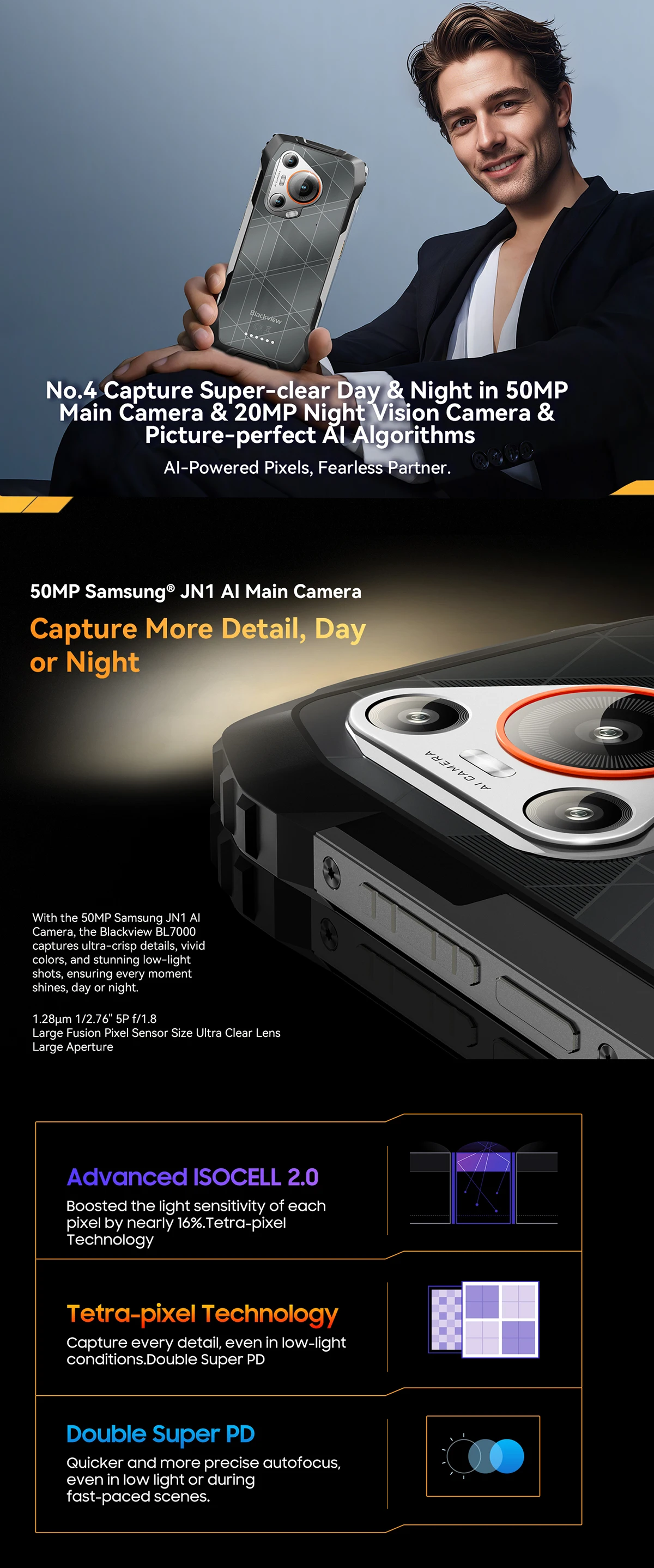 BLACKVIEW BL7000 Portocaliu este un telefon robust, cu design modern si ecran mare de 6.78 inch, perfect pentru utilizatorii activi. Acesta ofera o performanta rapida datorita procesorului puternic si memoriei generoase. In plus, camera principala de 50MP si bateria mare de 7500mAh il fac ideal pentru orice activitate zilnica.