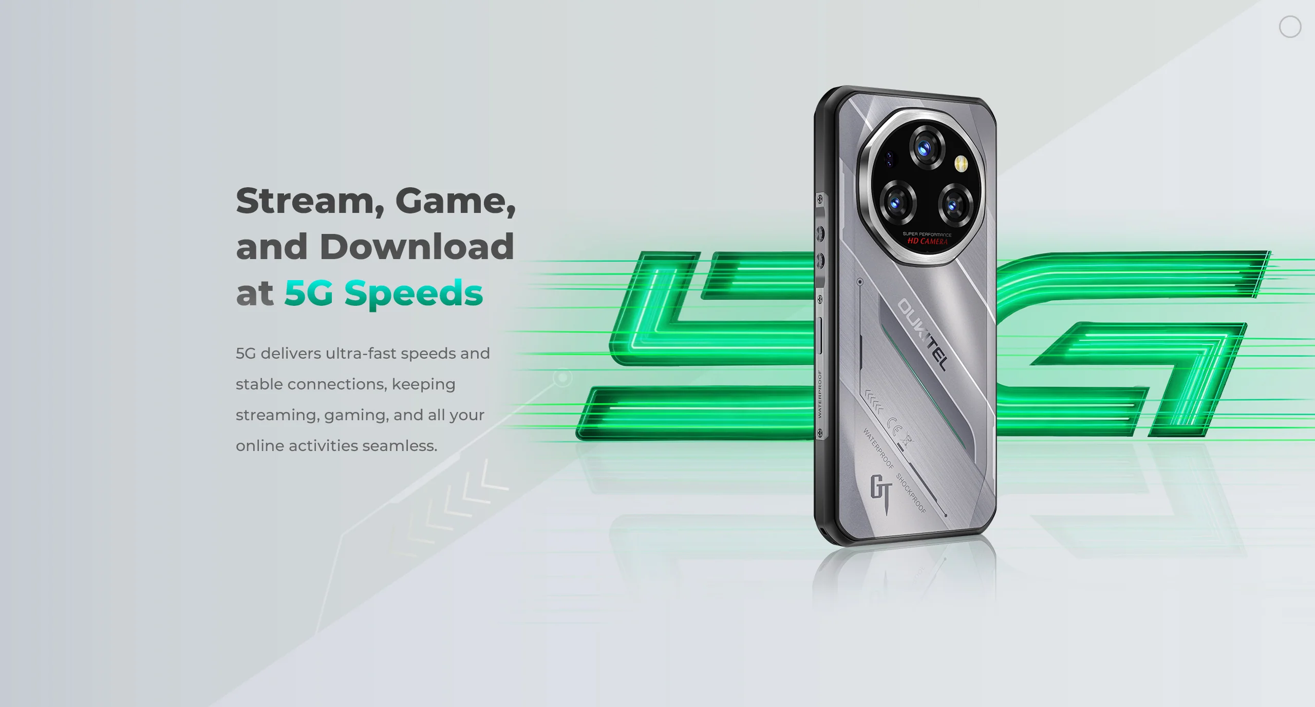 OUKITEL WP62 (Gri) este un telefon 5G ultra-rezistent (IP68/IP69K), ideal pentru medii dificile. Dispune de ecran 6.6" FHD+ 120Hz si CPU Dimensity 7025. Memorie masiva: 48GB RAM (16GB + 32GB extinsi) si 512GB ROM. Camera principala 108MP si baterie de 11000mAh cu incarcare rapida 33W.