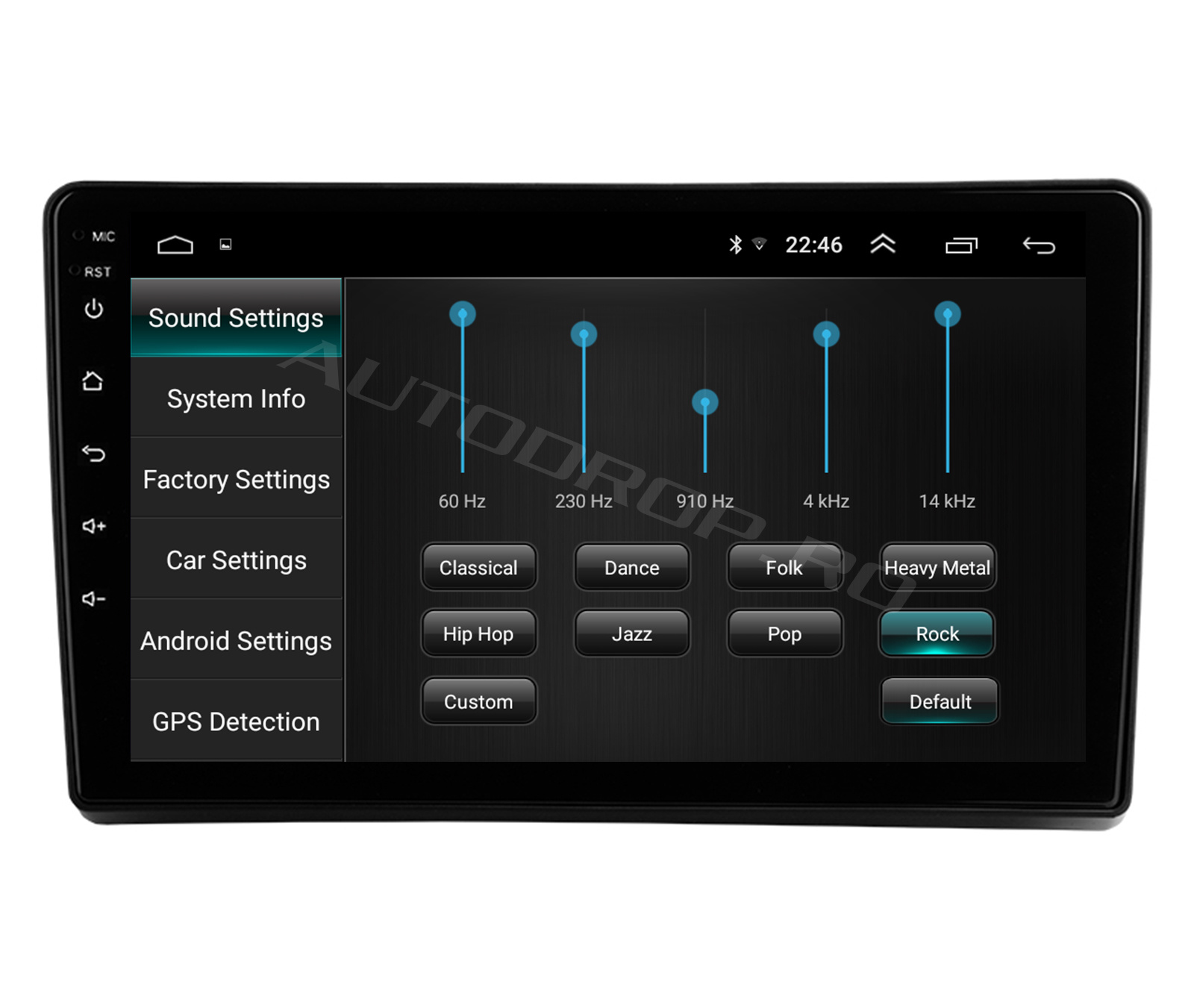 Sistem Operare Android 10, RAM: 1 GB, MEMORIE INTERNĂ: 16GB, CPU: Mediatek 8227L 1,3GHZx4 , Cip radio de inaltă calitate IC: NXP 6851 și Amplificator IC AC7315.