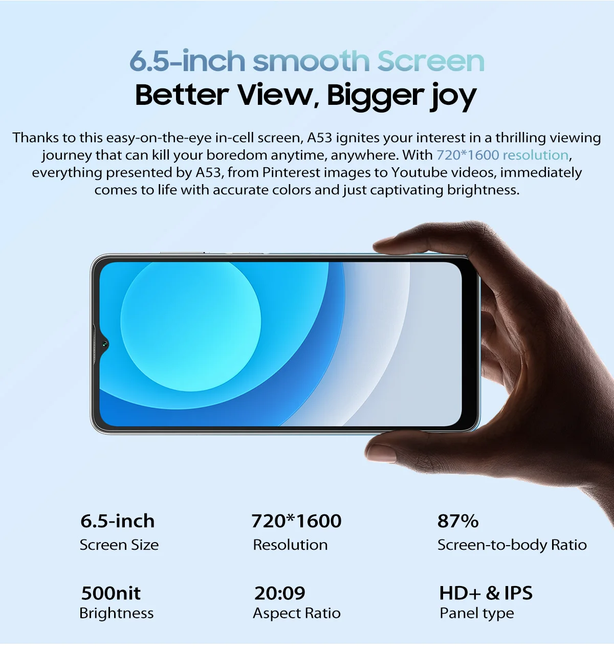 | 1x Telefon mobil Blackview A53 1x Incarcator 10W 1x Cablu USB Type C |