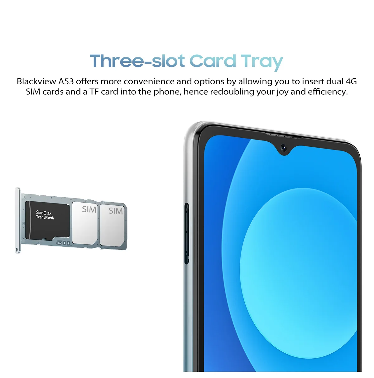 Telefon mobil Blackview A53 Gri, 4G, 6.5", IPS LCD, 7GB RAM (3GB + 4GB extensibili), 16GB ROM, Android 12, Mediatek MT6761, Bt. v5.0, 5080mAh, Dual SIM
