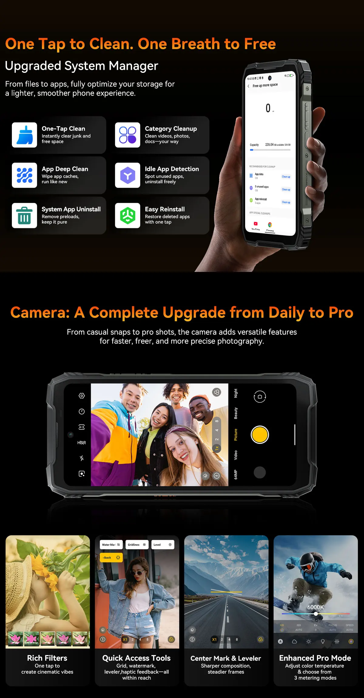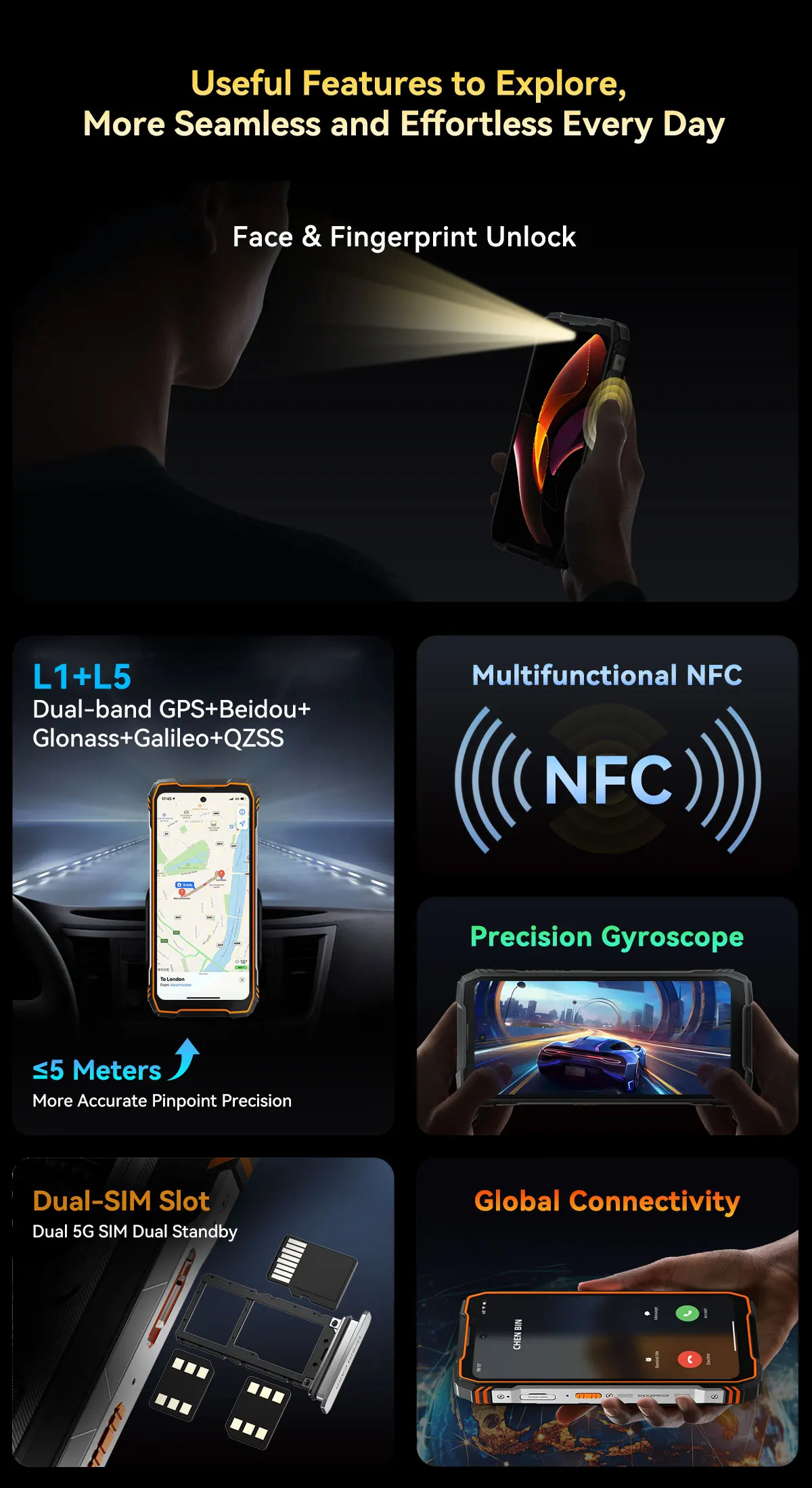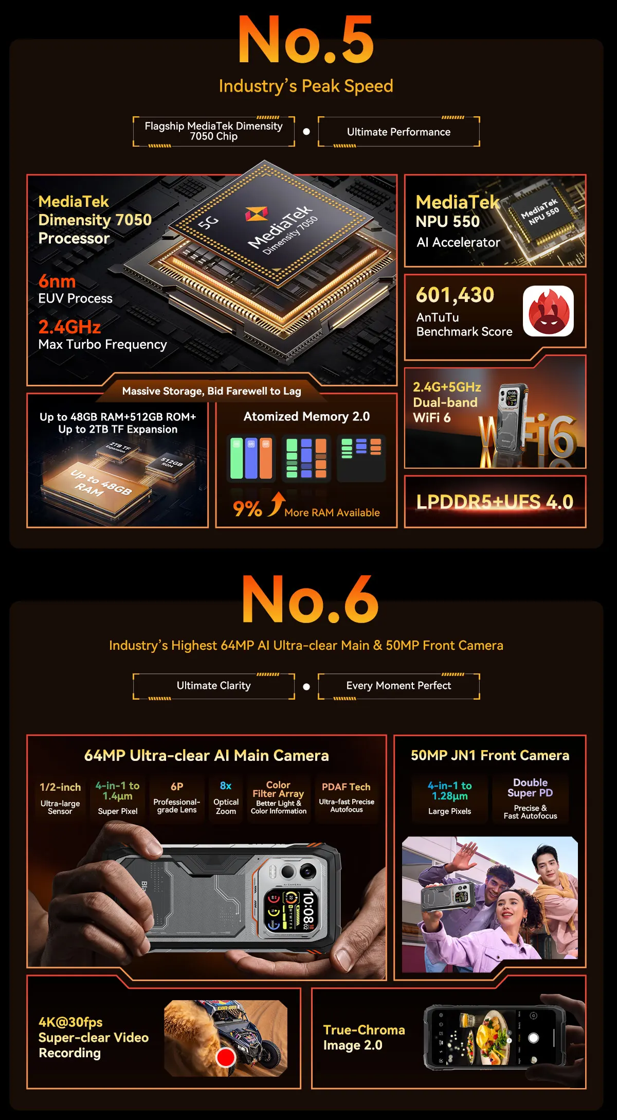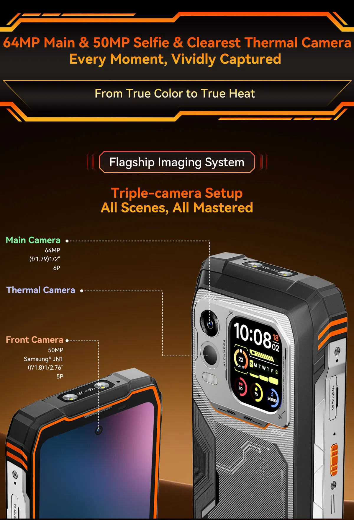 Un telefon rugged 5G de ultimă generație, ideal pentru condiții extreme, oferind performanță de top, o baterie masivă și funcții specializate, cum ar fi camera termică.