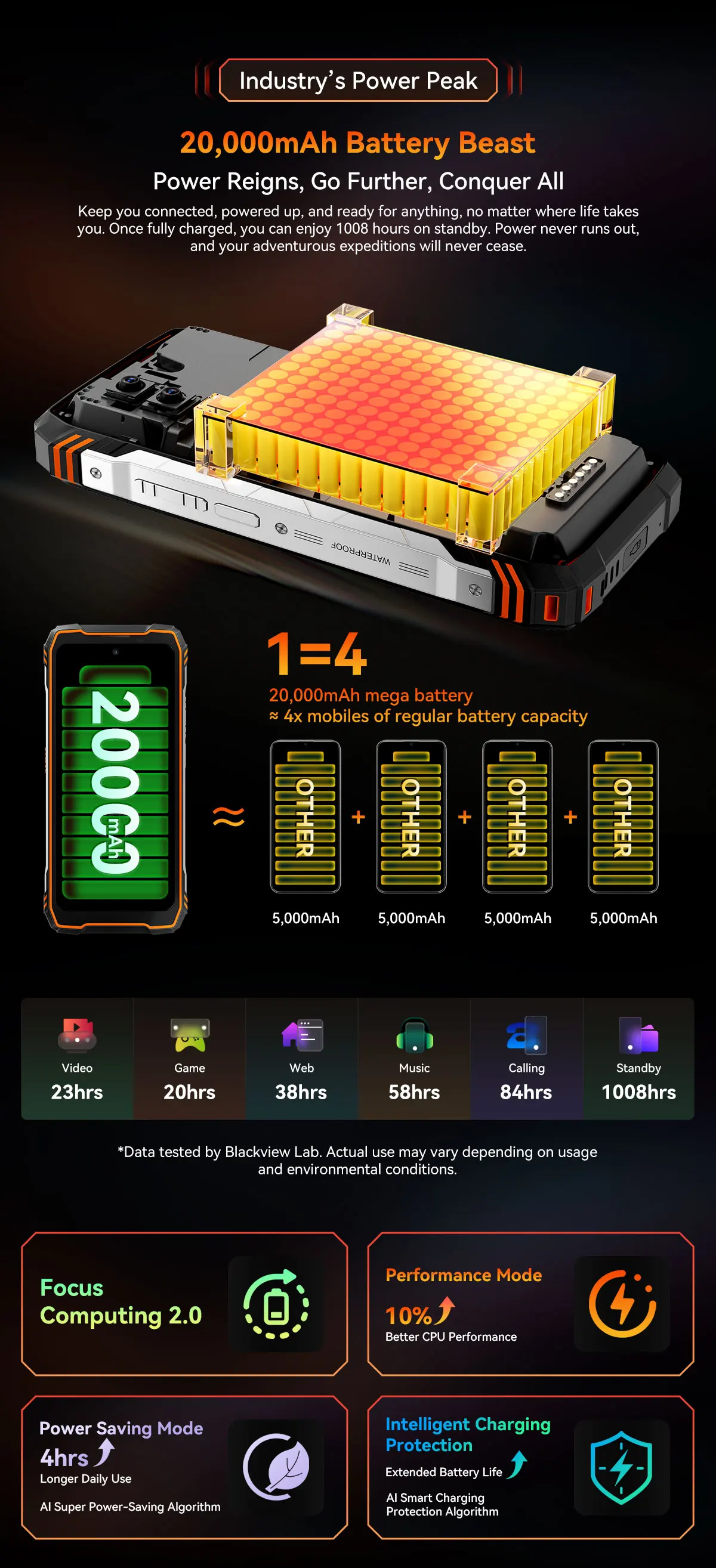 • Capacitate: 20,000 mAh (autonomie extinsă).