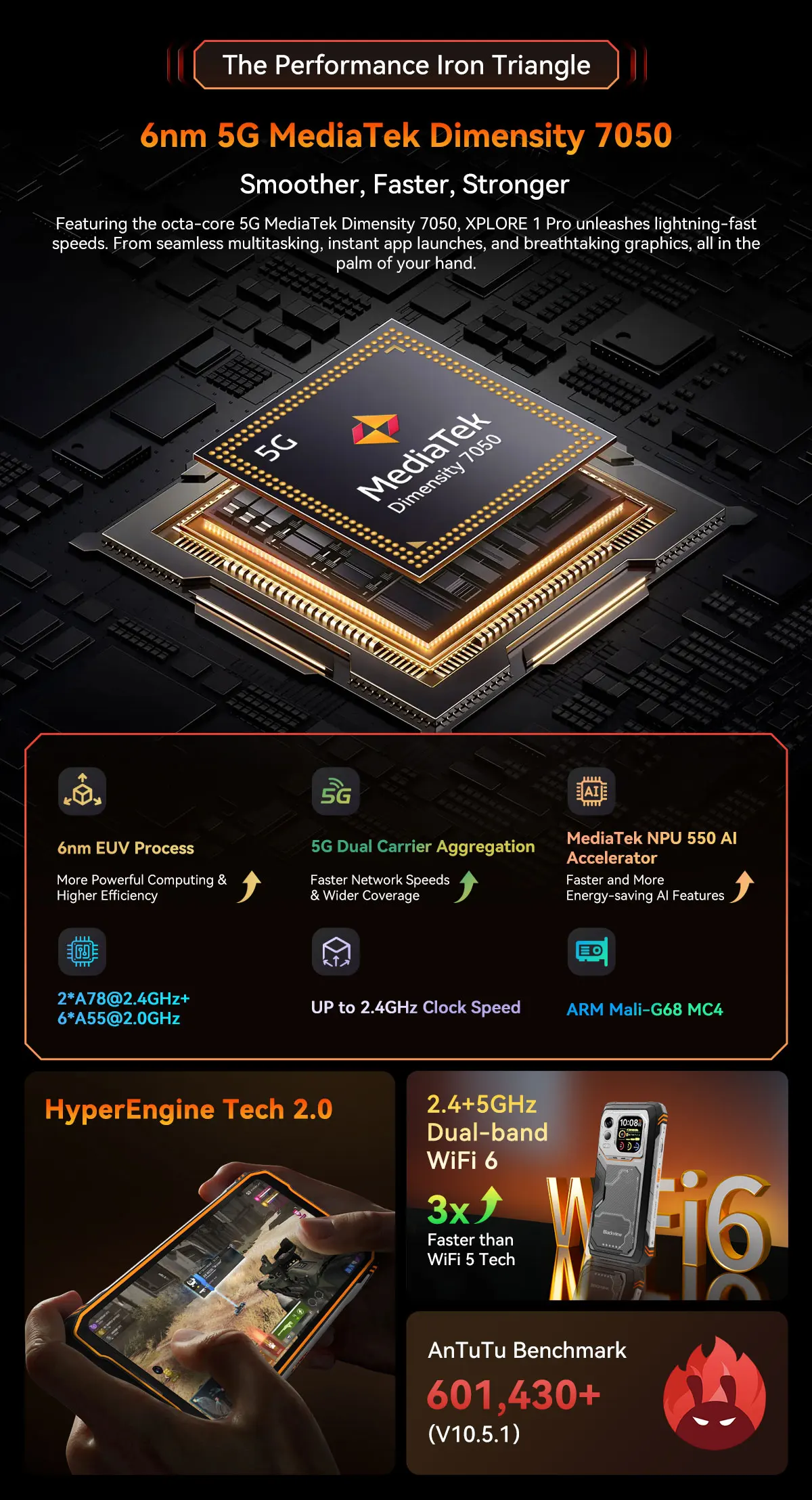 • Procesor: MediaTek Dimensity 7050 Octa-core (6 nm, până la 2.4 GHz).