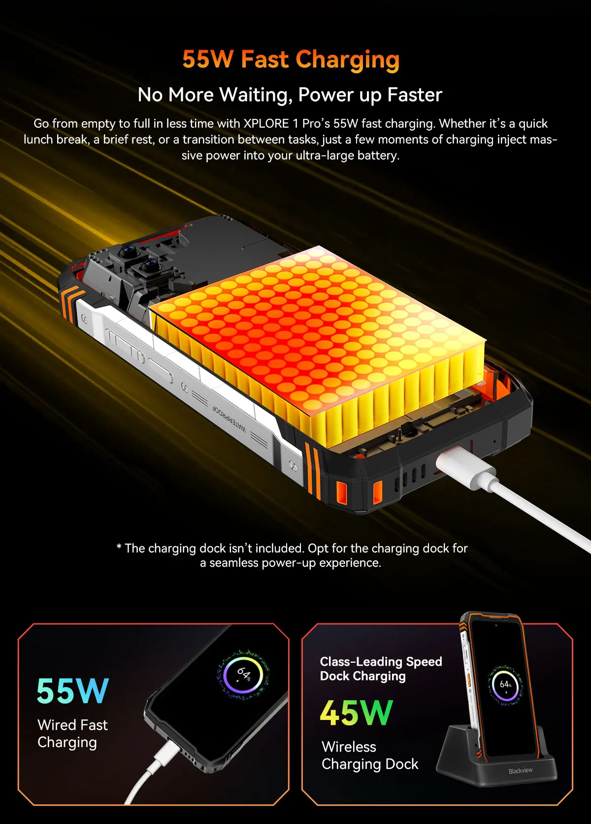 Blackview Telefon Mobil Blackview Xplore 1 Pro, Portocaliu, Camera Termica, 5G, 6.78″ FHD+, 48GB RAM (16GB+32GB Extensibili), 512GB ROM, 64MP, Android 15, Dimensity 7050, Ecran Secundar, 20000mAh, 55W, DualSIM