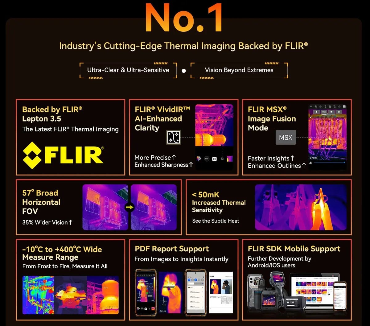 • Funcții Speciale: Include Camera Termică FLIR VividIR.