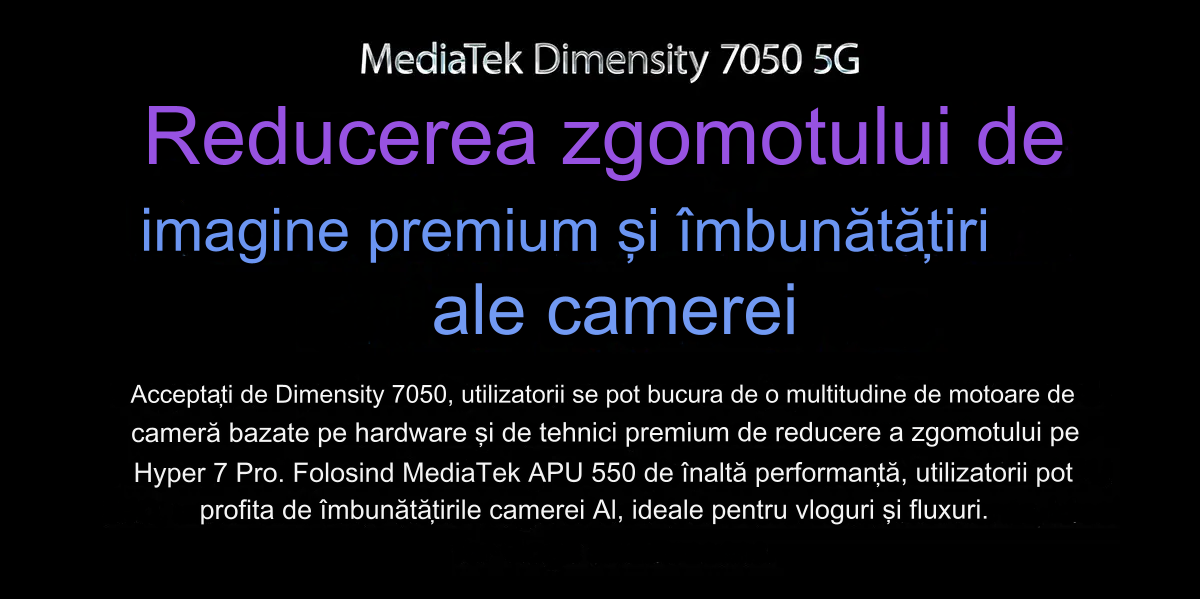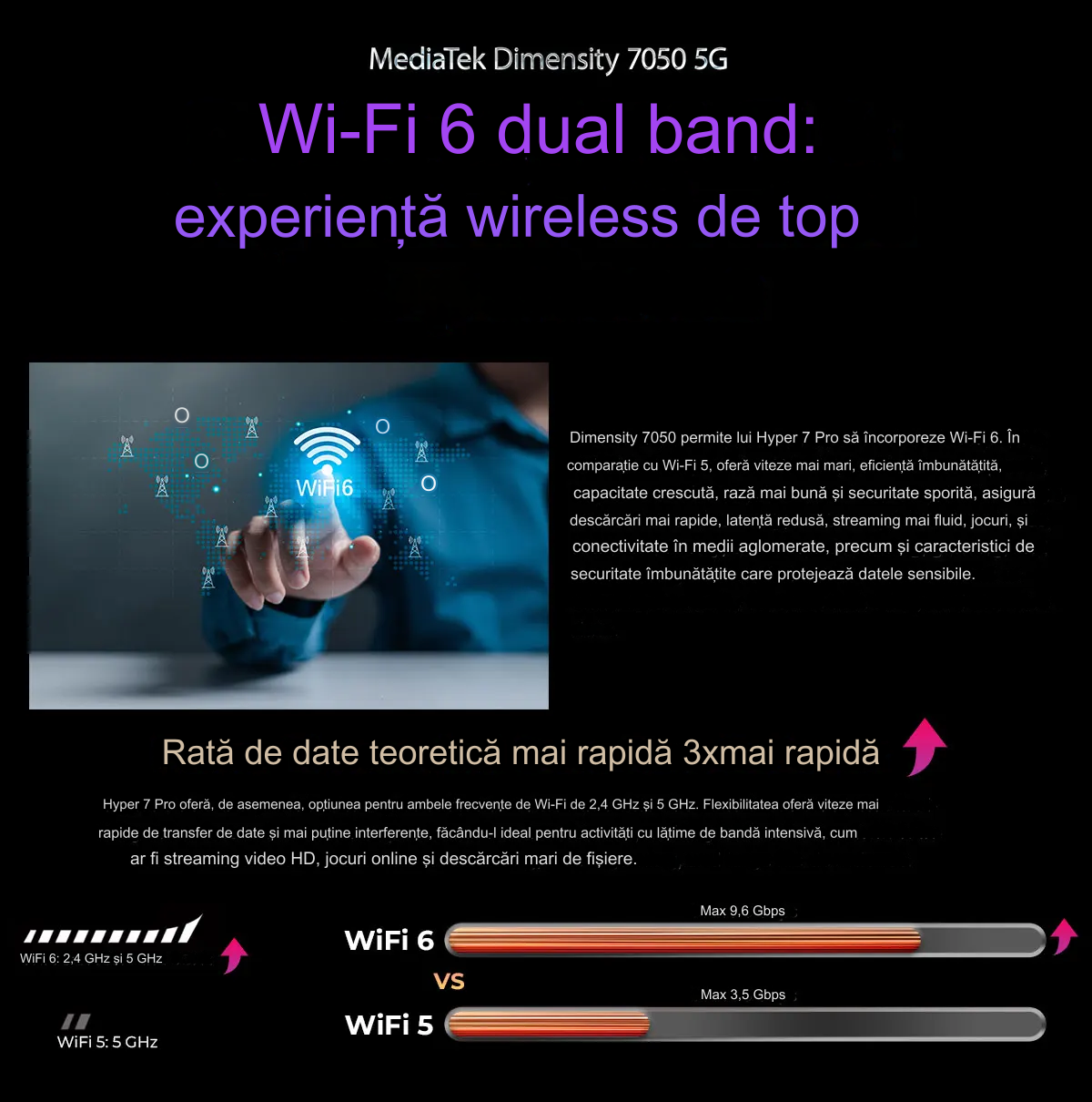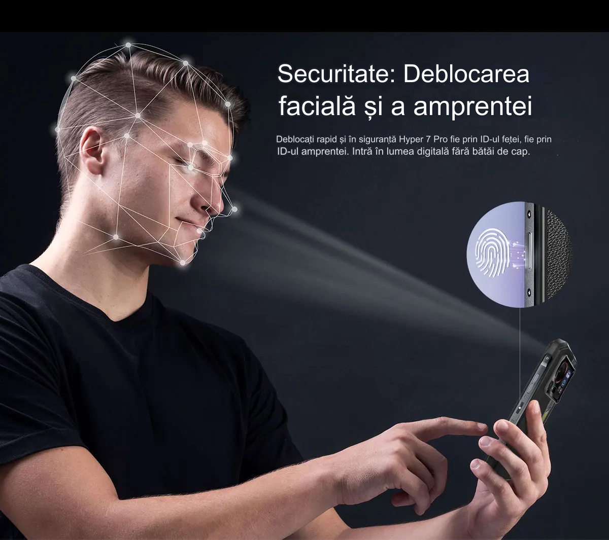 Telefon mobil HOTWAV Hyper 7 Pro, Negru, 5G, 6.6" 2.4K 120Hz, 36GB RAM (16GB+20GB extensibili), 256GB ROM, 200MP+24MP Night Vision, Android 14, MediaTek Dimensity 7050, 10800mAh, NFC, Dual SIM