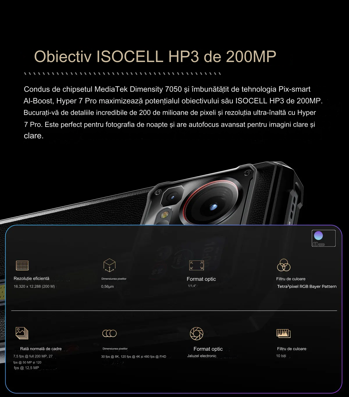 | Camera foto | Principala: 200MP Secundara: 32MP Night Vision: 24MP |
