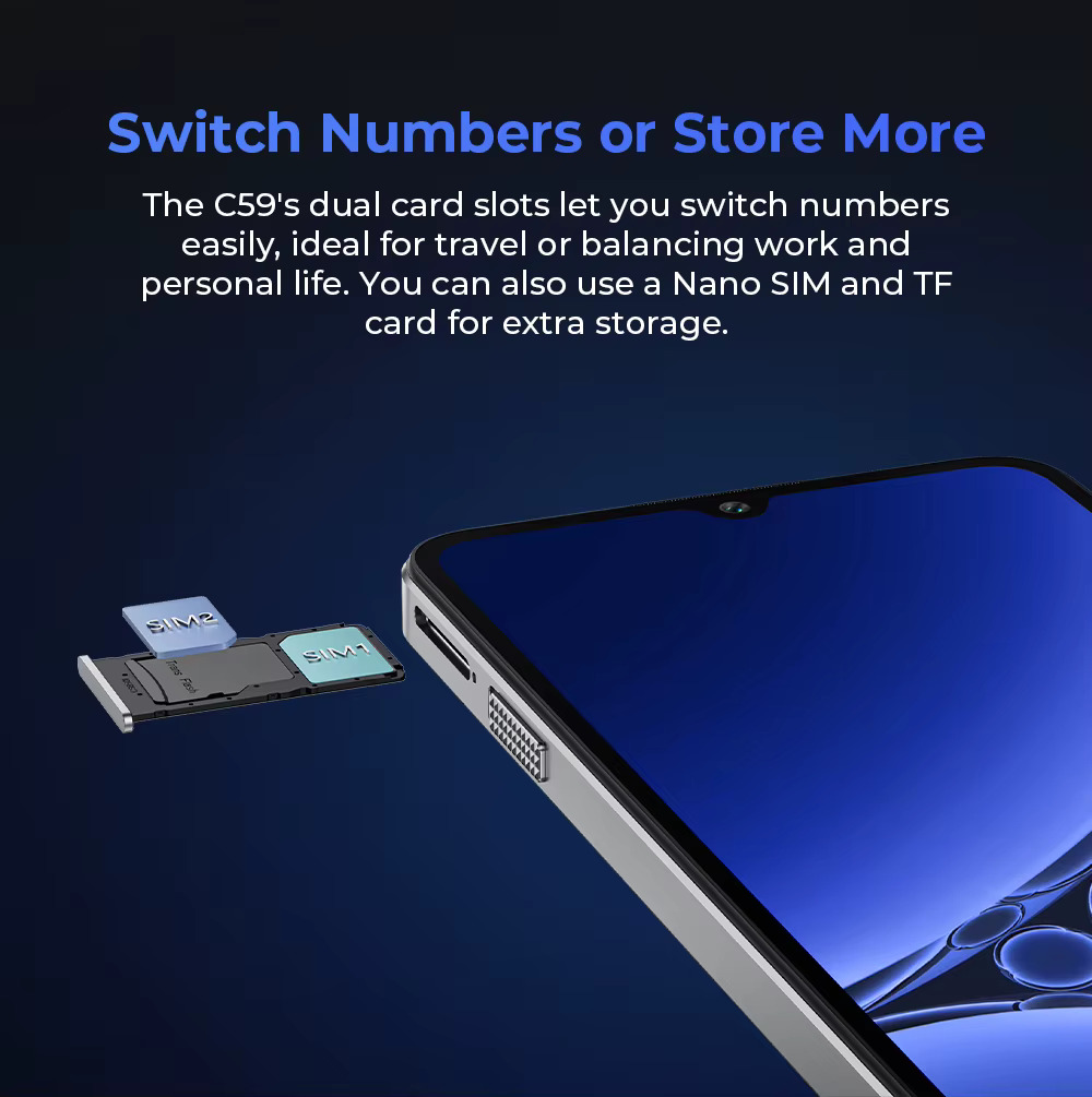 Oukitel C59 este un smartphone elegant si fiabil, ideal pentru utilizarea zilnica. Cu un ecran generos de 6.88", o baterie de lunga durata si un design modern, iti ofera o experienta fluida. Perfect pentru apeluri, social media si divertisment, acest telefon este un partener de incredere in fiecare zi.