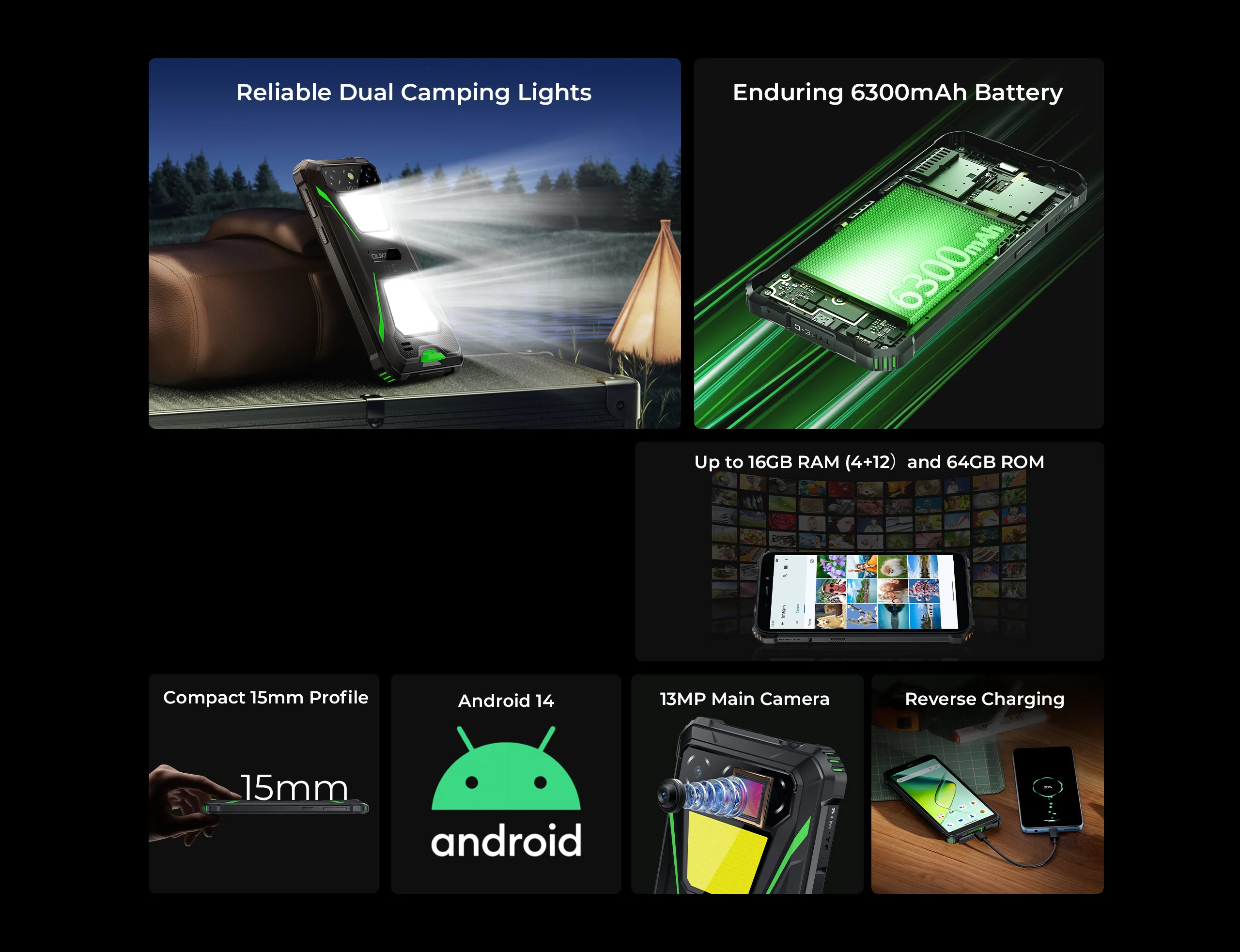 Telefon Mobil Oukitel G5, Verde, 4G, 6" IPS 60Hz, 16GB RAM(4GB+12GB Extensibili), 64GB ROM, 13MP, Android 14, Unisoc T310, Incarcare Inversa, OTG, Jack, 6300 mAh, 10W, Dual SIM