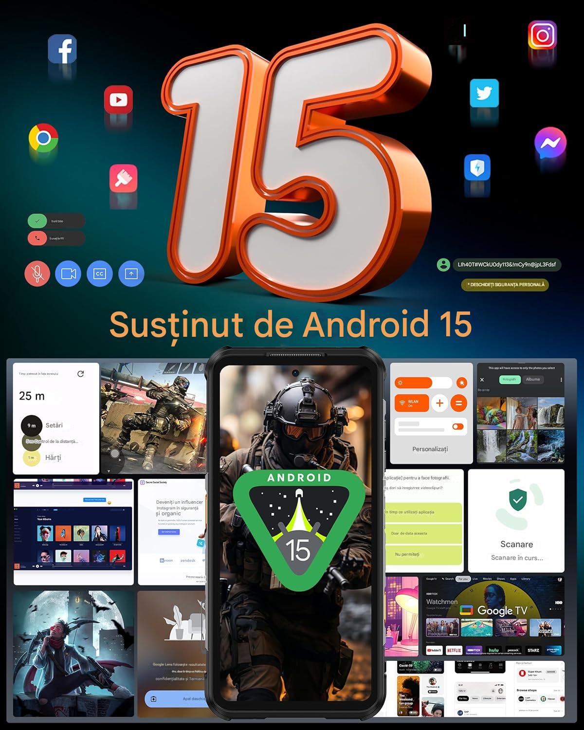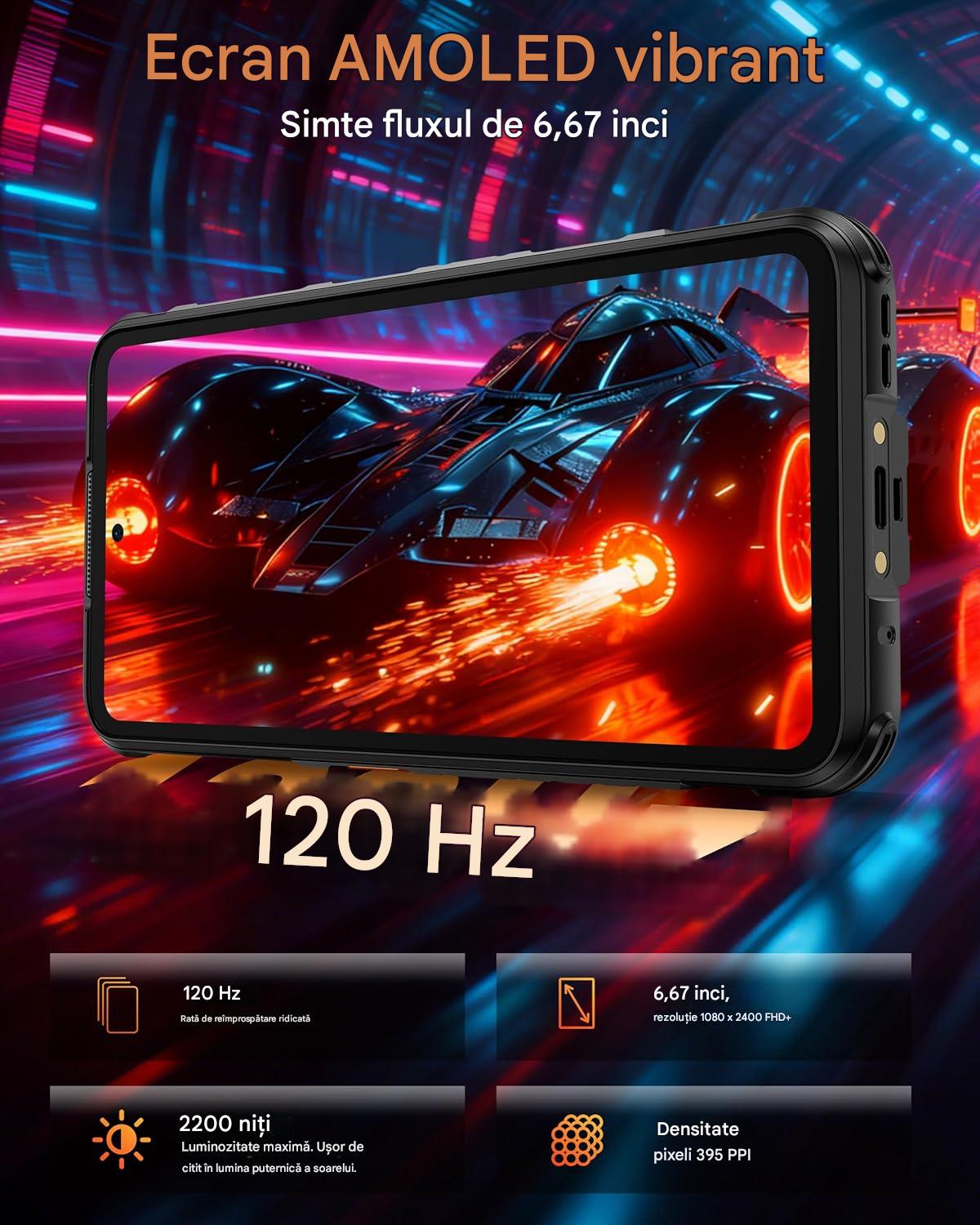 Telefon Ulefone RugOne Xever 7, Negru, 5G, 6.67" AMOLED, 24GB RAM (12GB + 12GB Extensibili), 512GB ROM, 50MP, Android 15, Dimensity 7025, Baterie interschimbabila, eSIM, Night Vision, 33W, Dual