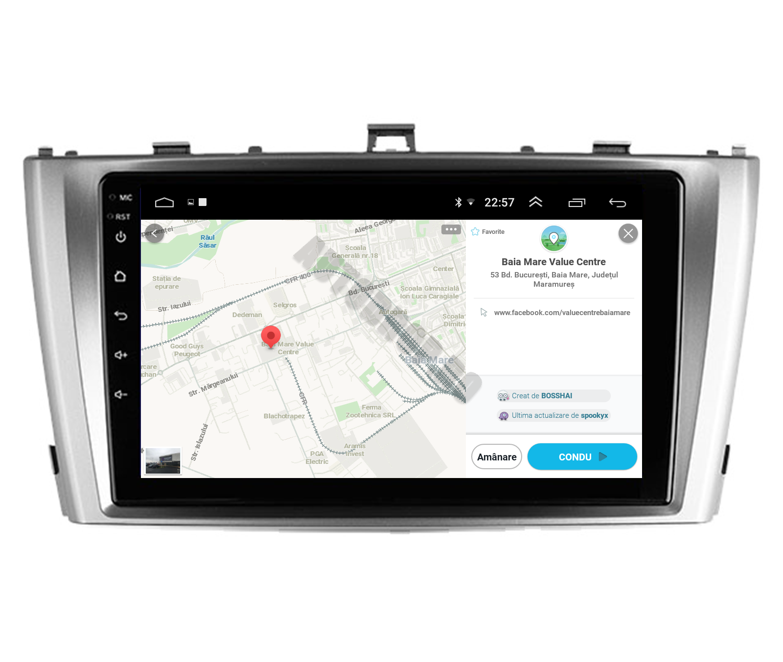 Suport online și offline pentru Navigatia GPS, susține Hărti 3D și îndrumare vocală în diverse limbi disponibile, majoritatea deja setate în limbă romană.