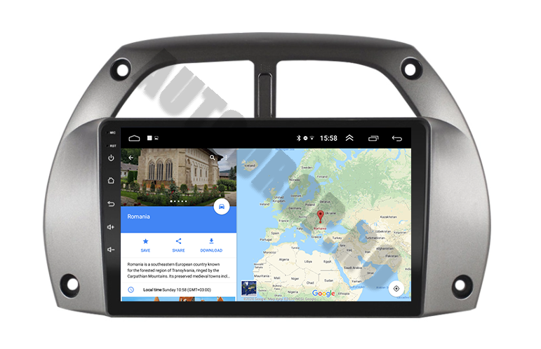 Suport online și offline pentru Navigatia GPS, susține Hărti 3D și îndrumare vocală în diverse limbi disponibile, majoritatea deja setate în limbă romană.