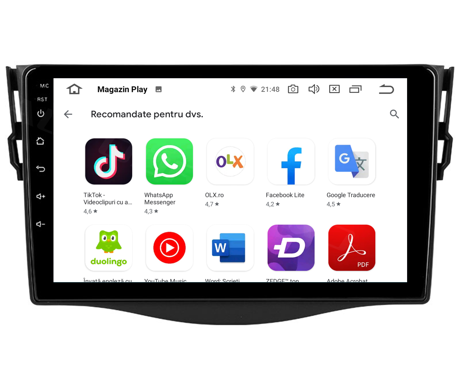 Aplicații Playstore, precum Youtube, Waze, Sygic, Google Maps, Facebook, WhatsAPP, Netflix, TV/Radio Online, Google Voice Control, Instagram, etc.