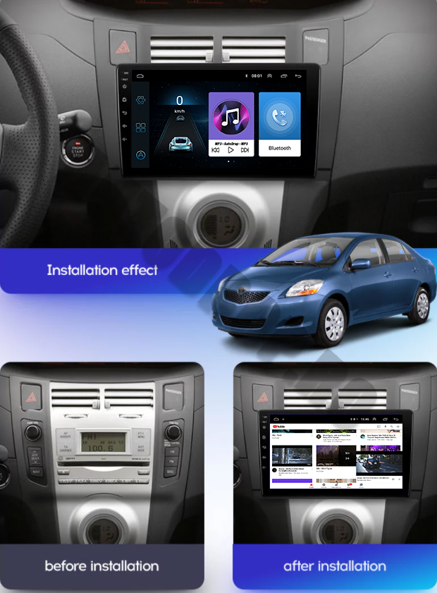 Navigatie Toyota Yaris (2005-2012), Android 10, P-Quadcore / 1GB RAM + 16GB ROM, 9 Inch - AD-BGP9001+AD-BGRKIT103