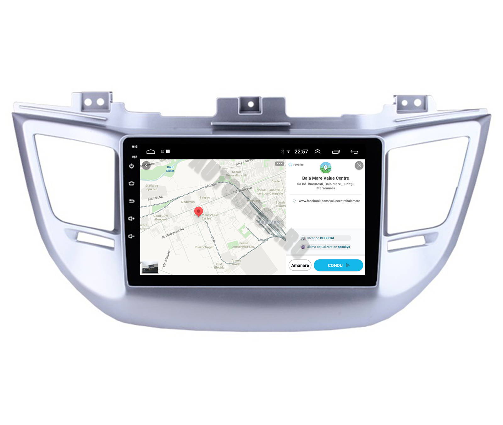 Suport online și offline pentru Navigatia GPS, susține Hărti 3D și îndrumare vocală în diverse limbi disponibile, majoritatea deja setate în limbă romană.